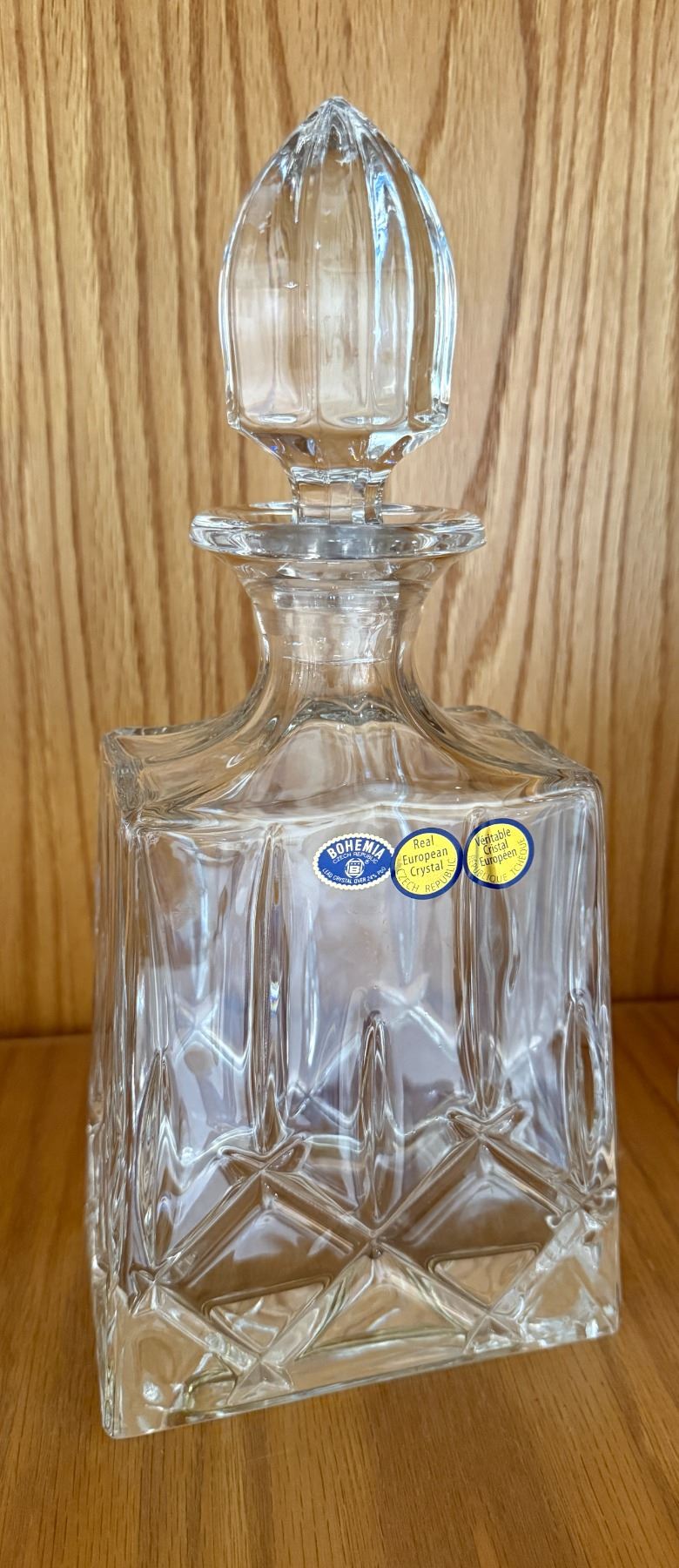 Large Bohemian Crystal Decanter with Original Stickers