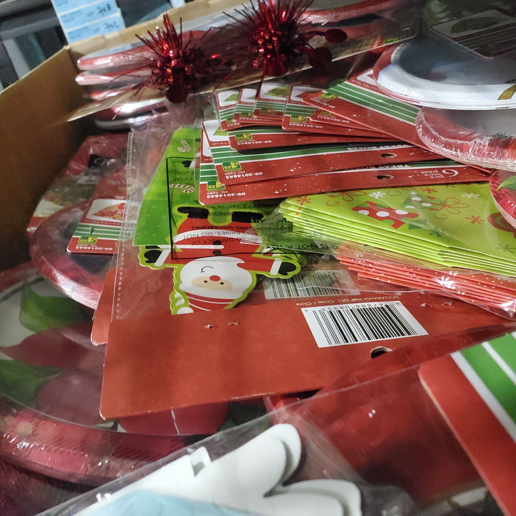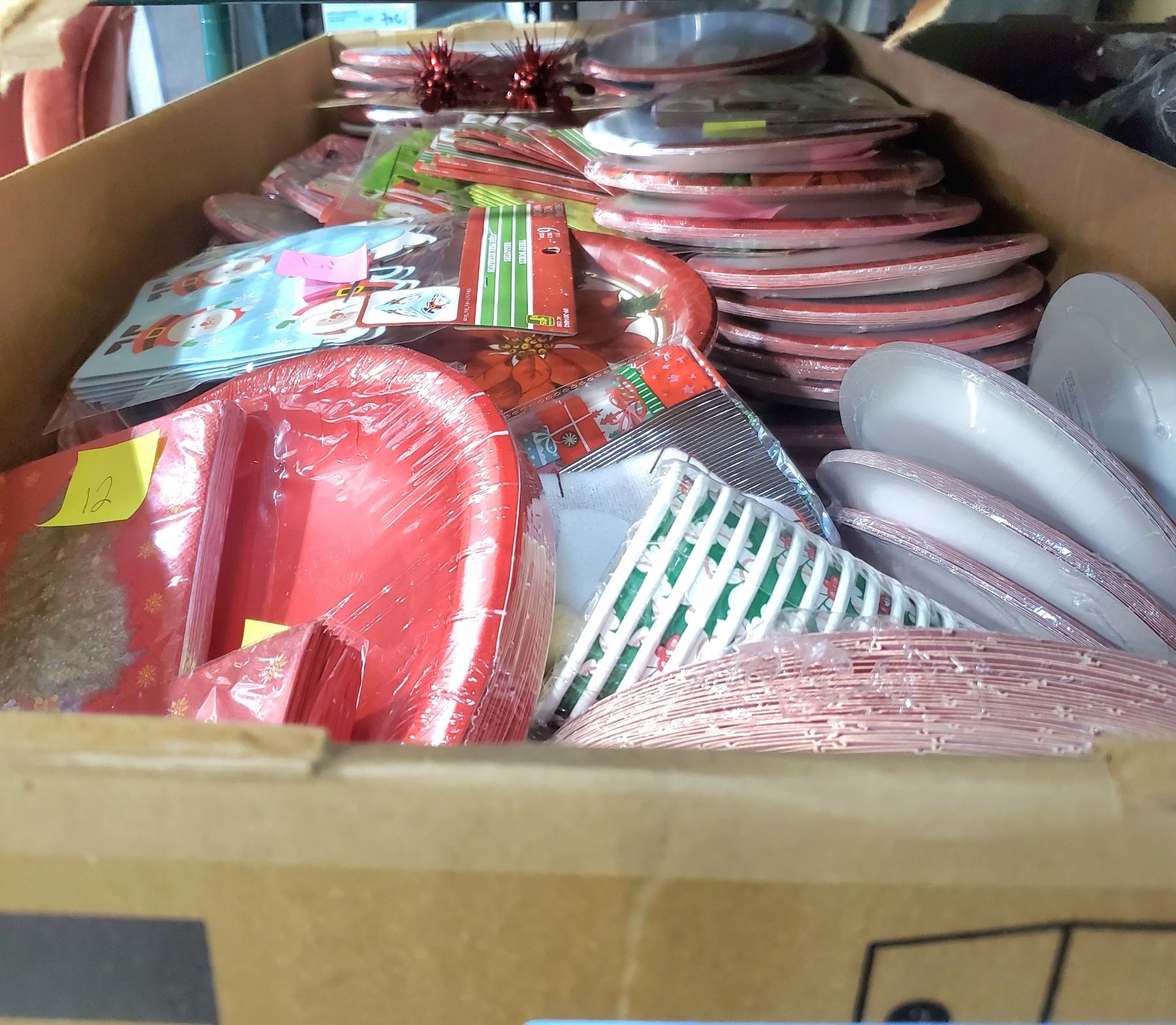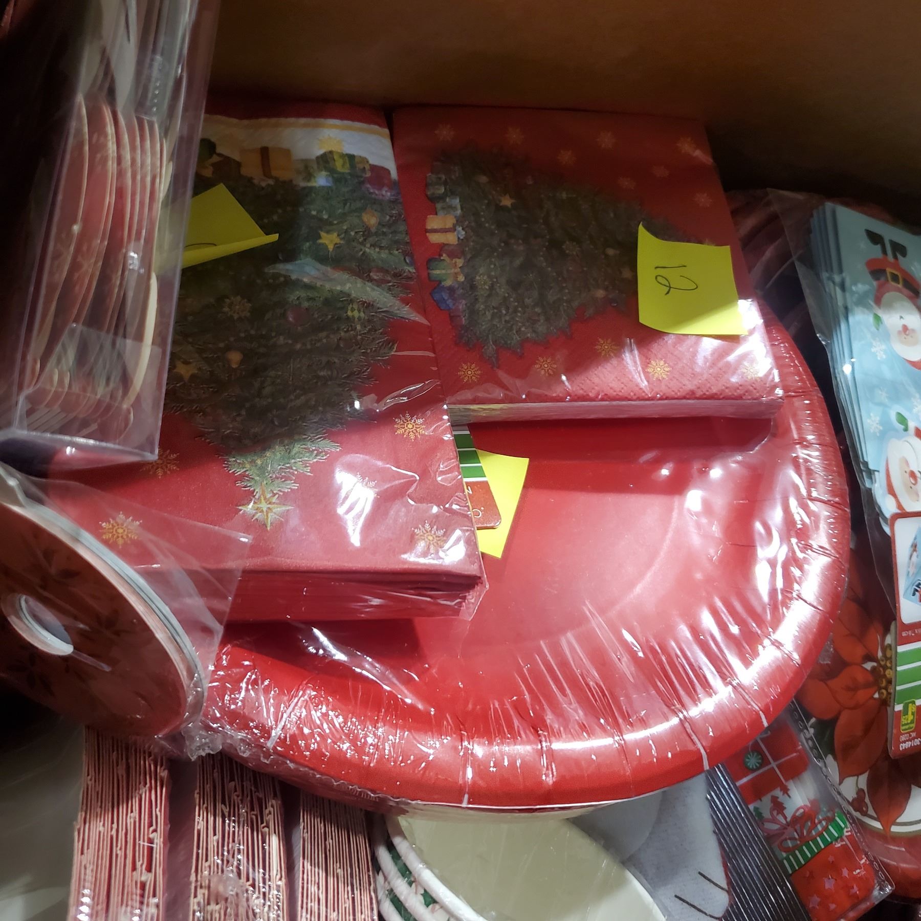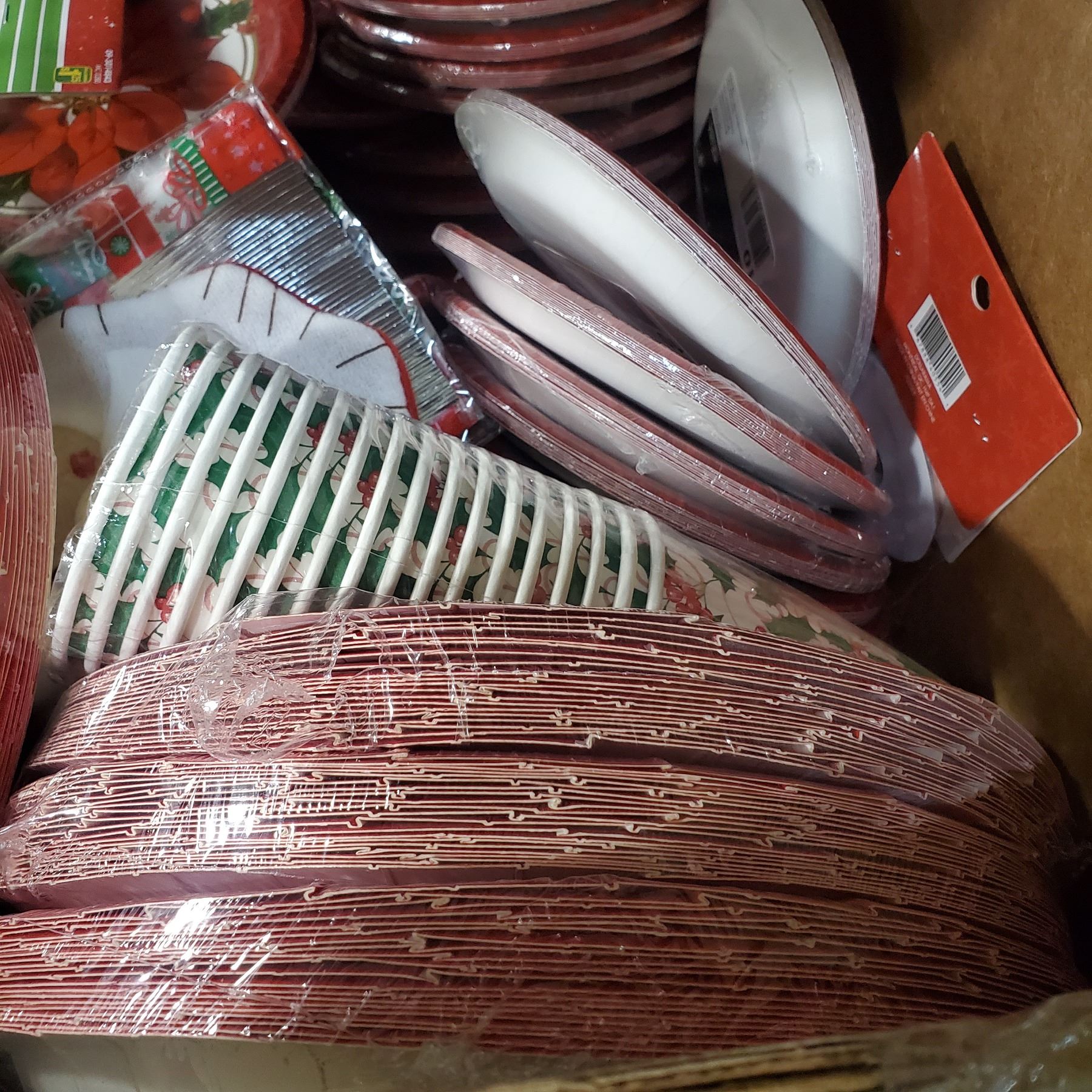 Large Box of Christmas Napkins, Cups, Plated, Etc.