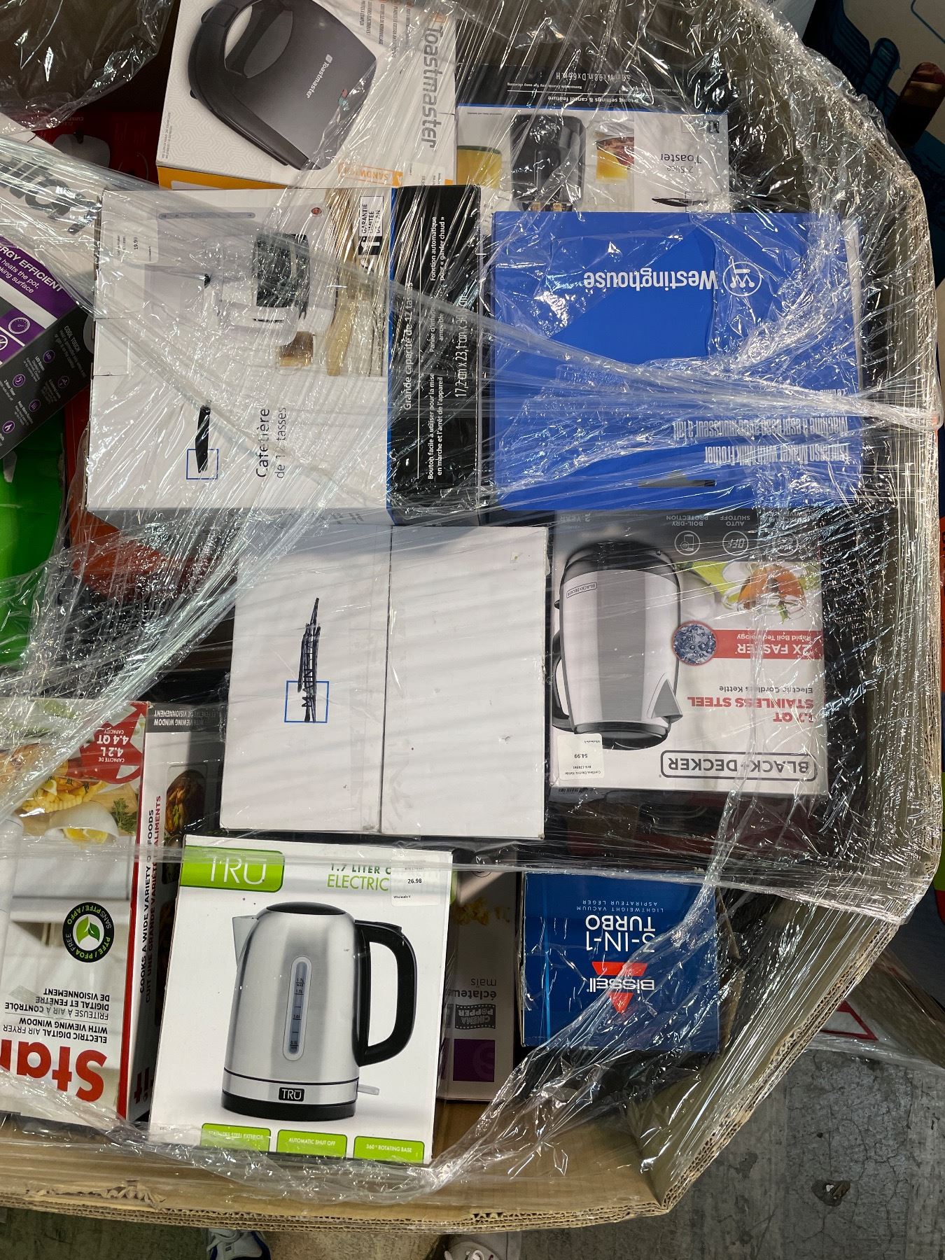 Large Bulk Retail Pallet - Salton Portable Cooktop, Toastmaster Sandwich Grill, Electric Kettle, Starfrit Electric Air Fryer, (Approx. Retail $1751.57)