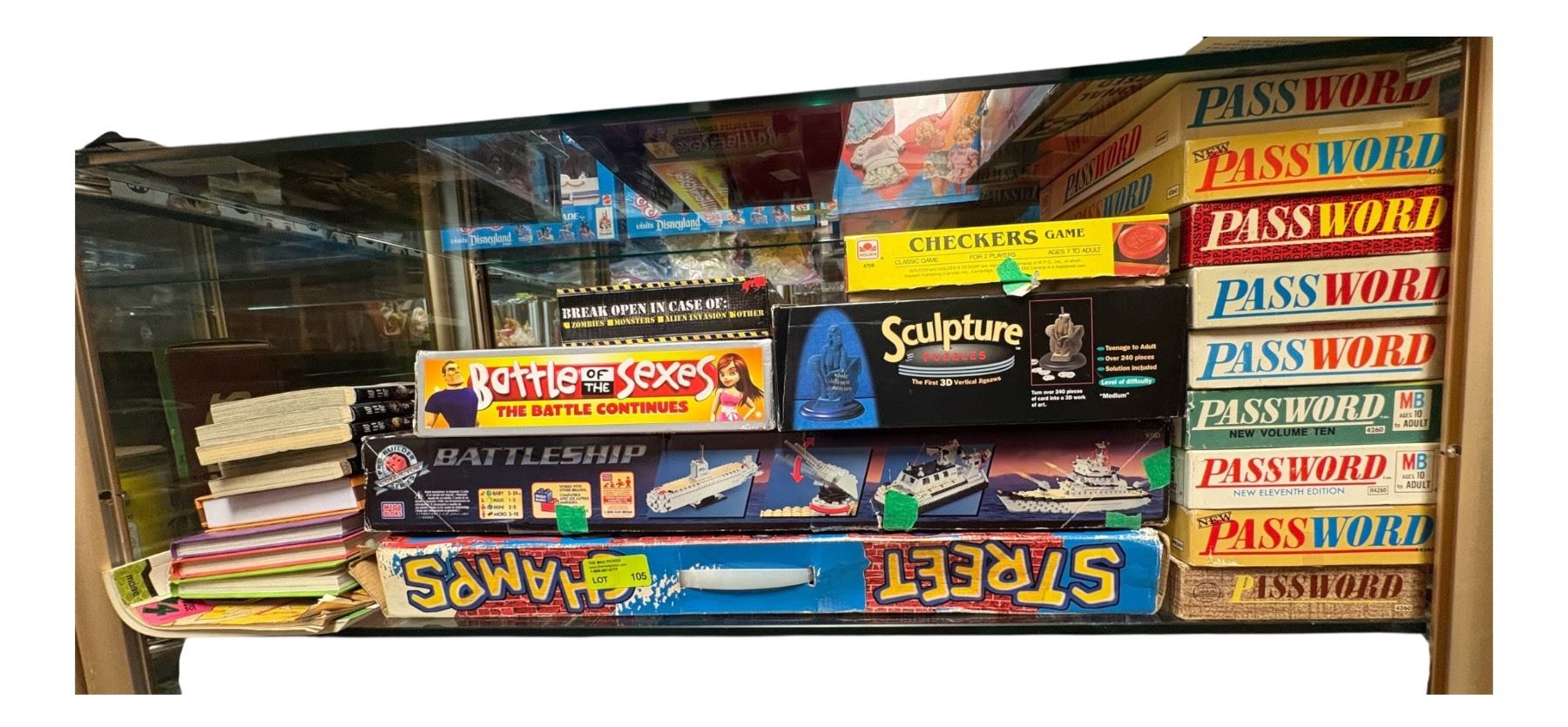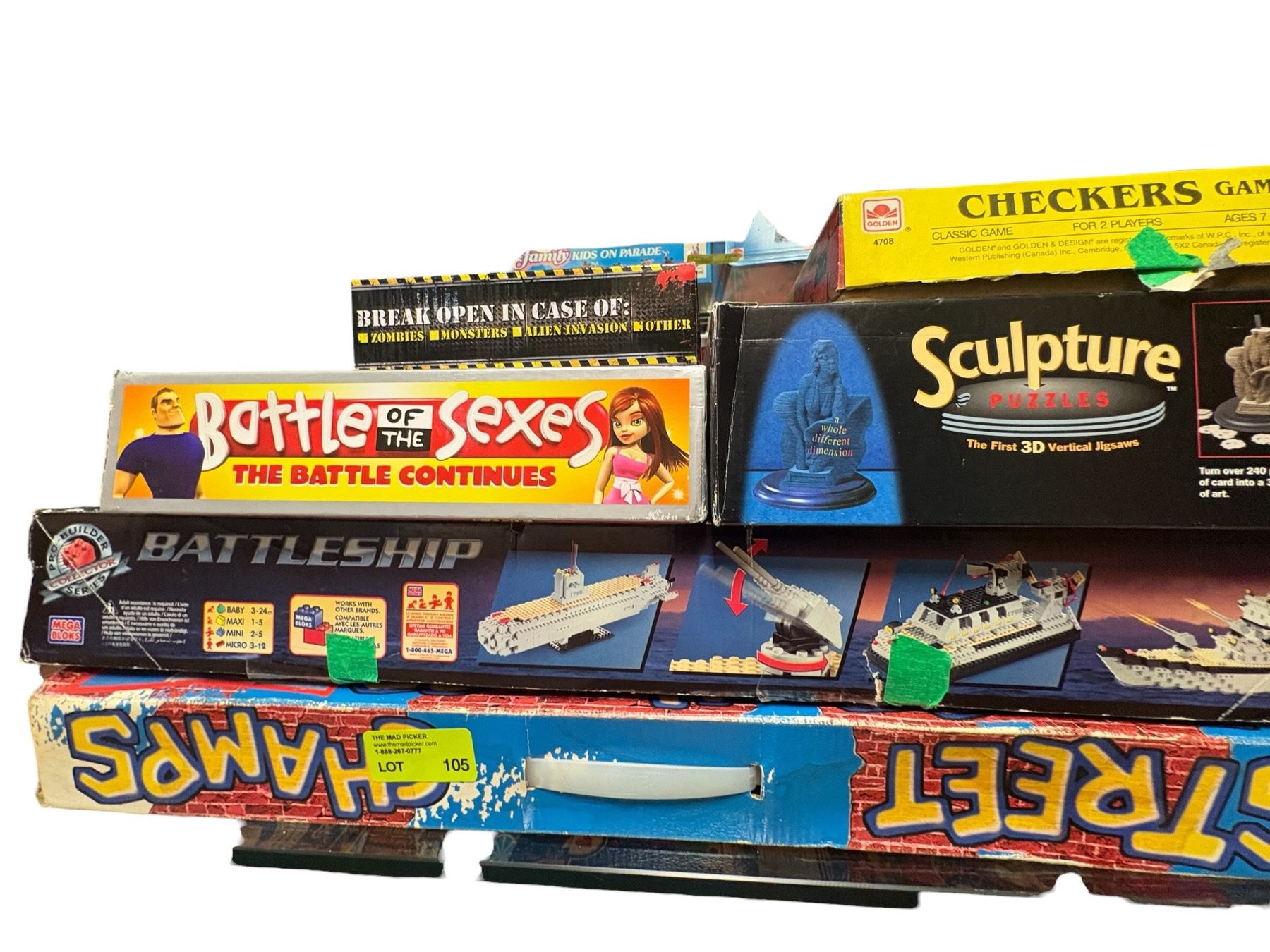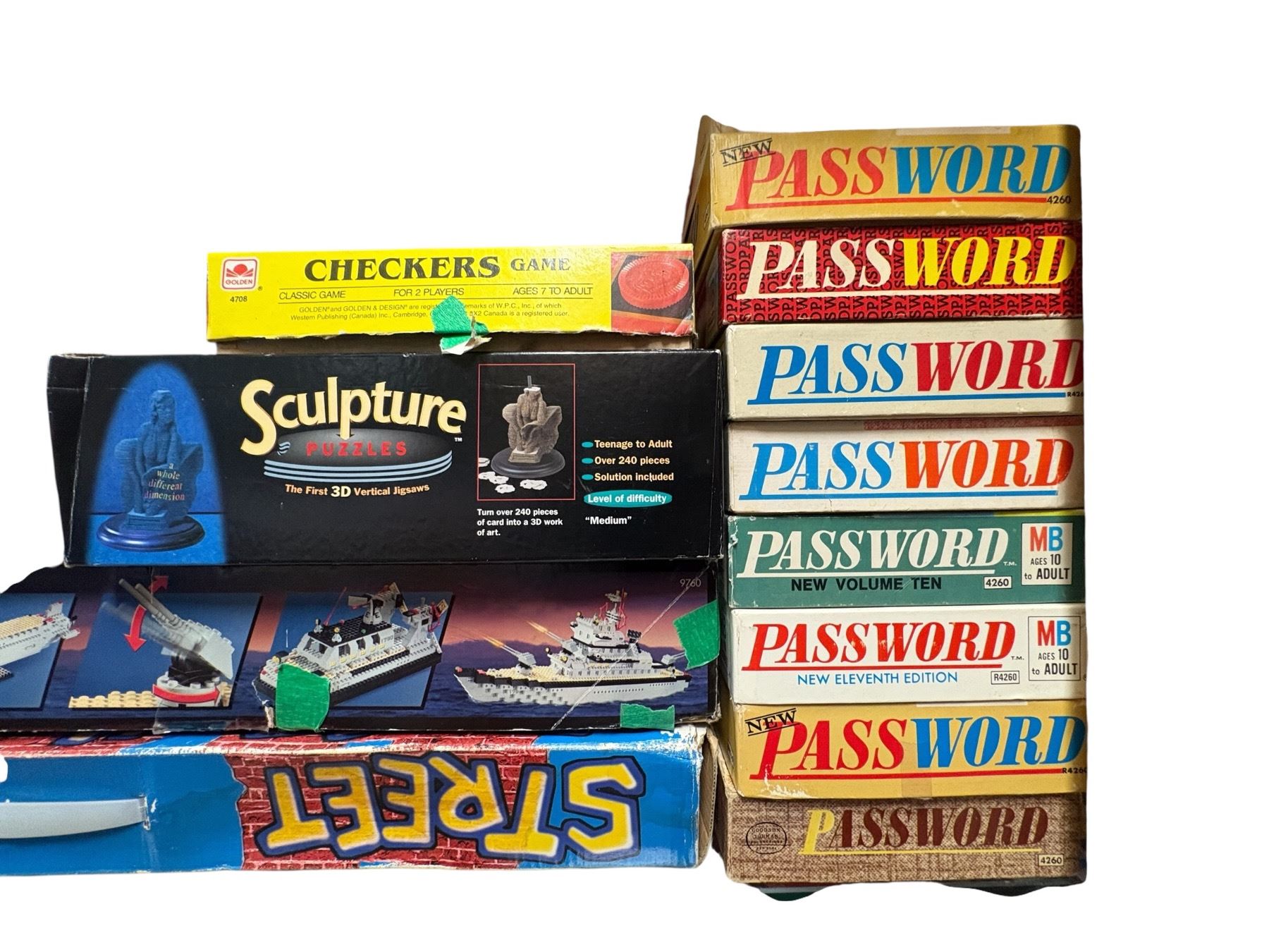Large collection of vintage board games and puzzles from various makers, predominantly from the mid-20th century. Includes a mix of strategy games, classic family games, and jigsaw puzzles. Items feature original components and packaging where applicable. Specific titles and conditions vary within the set.