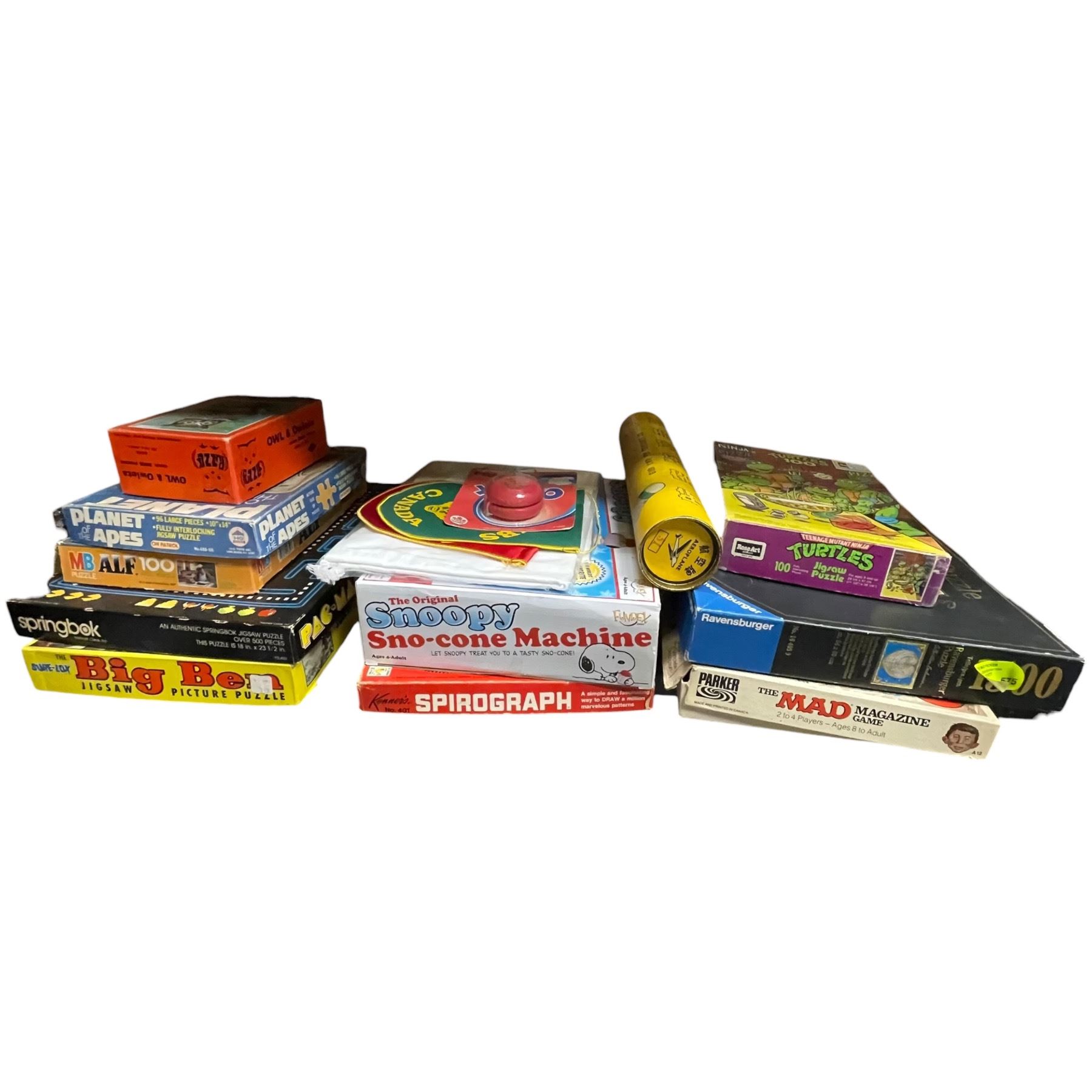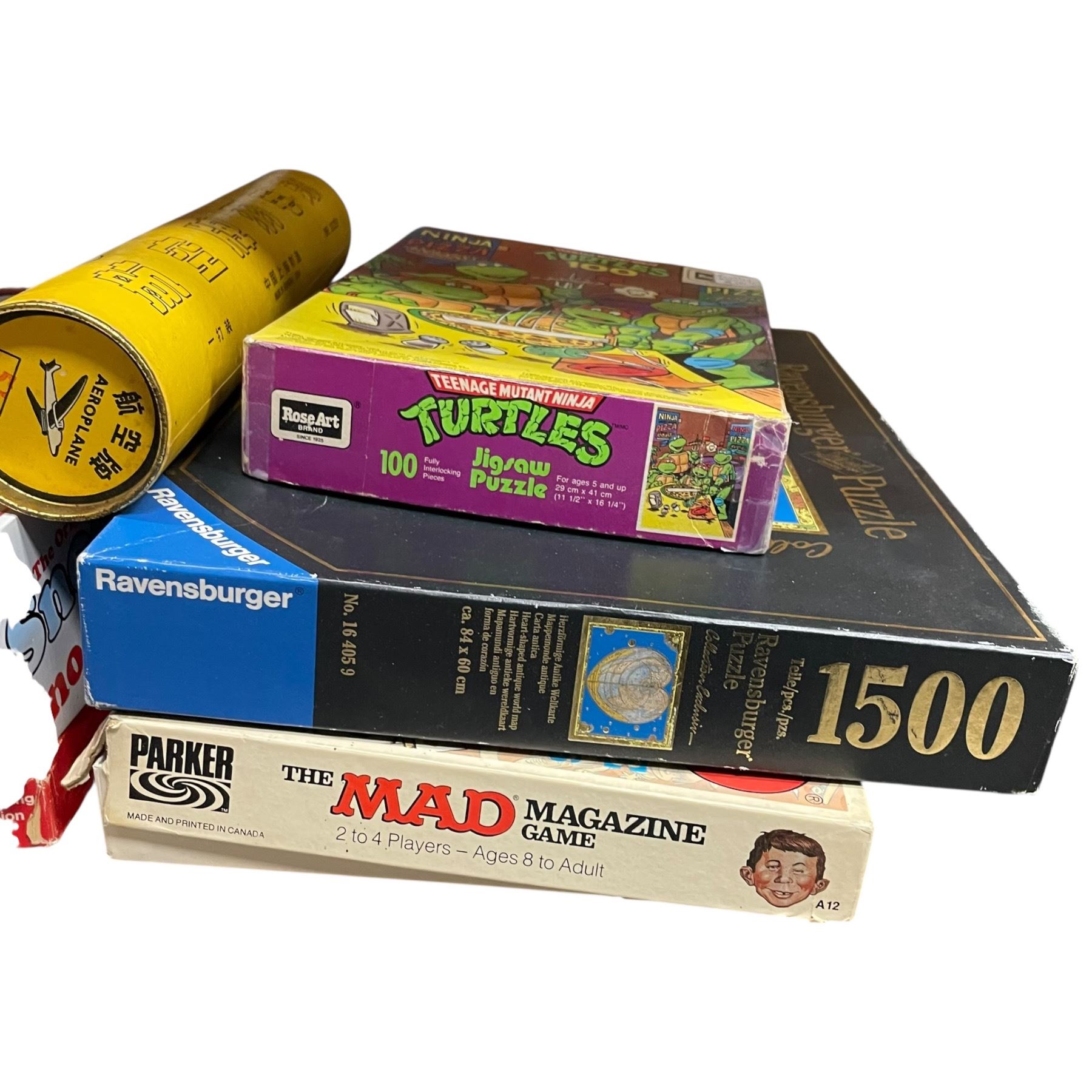 Large collection featuring vintage puzzles and board games. Includes various themes and formats across different eras. Item is as pictured.