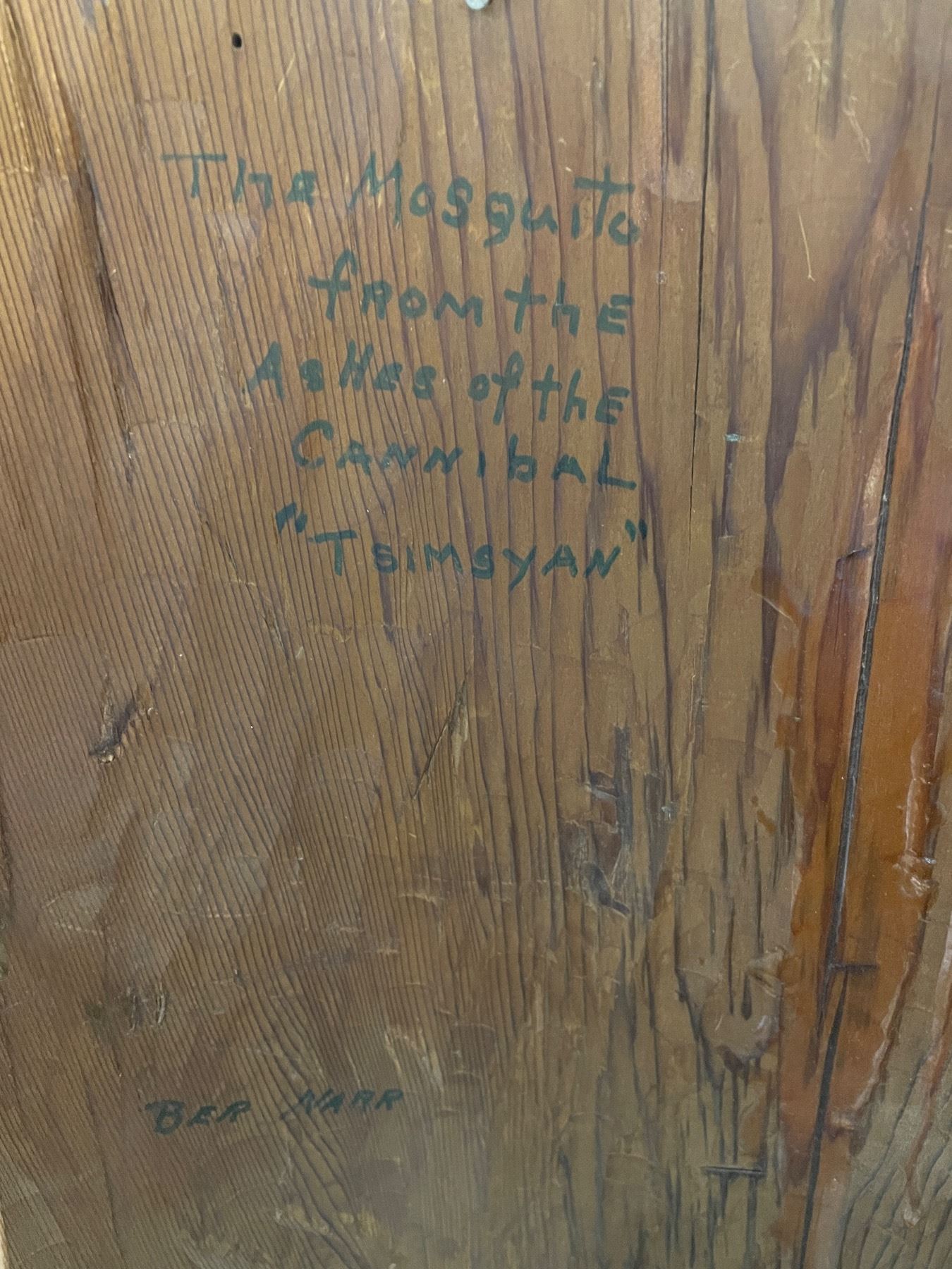 Large First Nations Red Cedar Carving "The Mosquito from the Ashes of the Cannibal" Tsimshian - Ber Narr - 10" deep x 18" wide x 16" tall