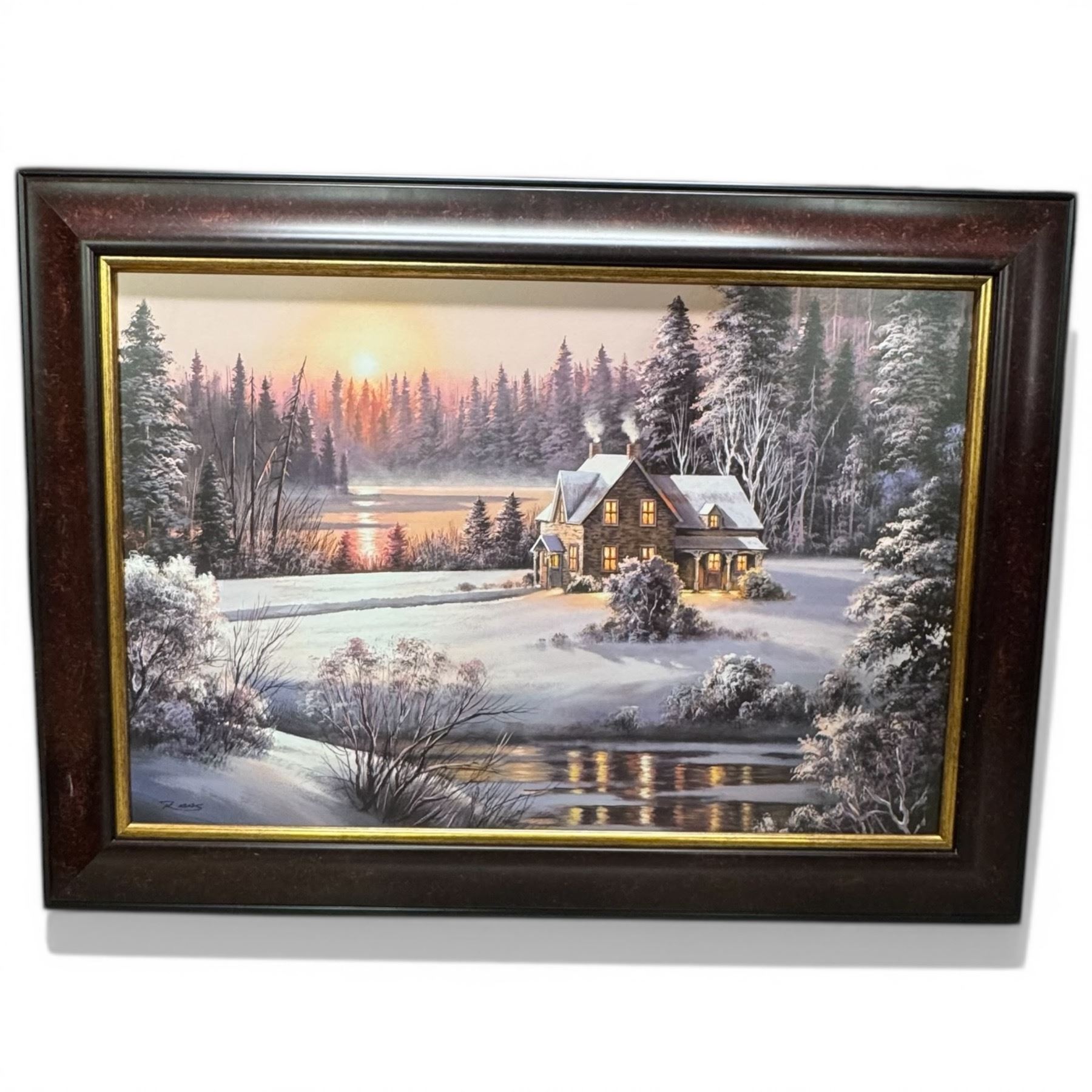 Large Framed Original Landscape Print Artist Signed 44x32"