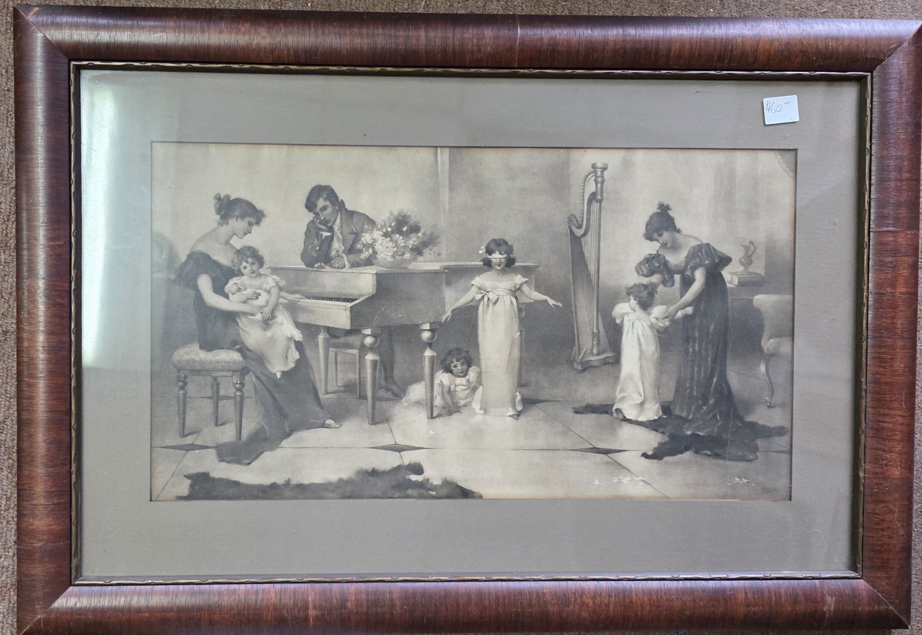 Large Framed Vintage Family Scene Print