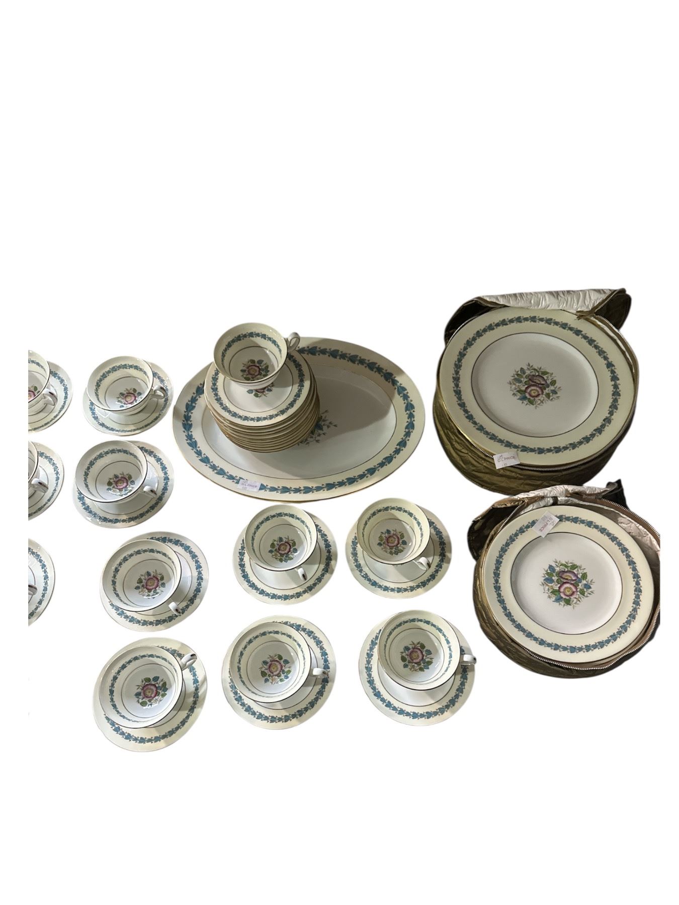 Large Group of Wedgewood Bone China Made in England - Tea Cups, Plates, Serving Tray, Etc.
