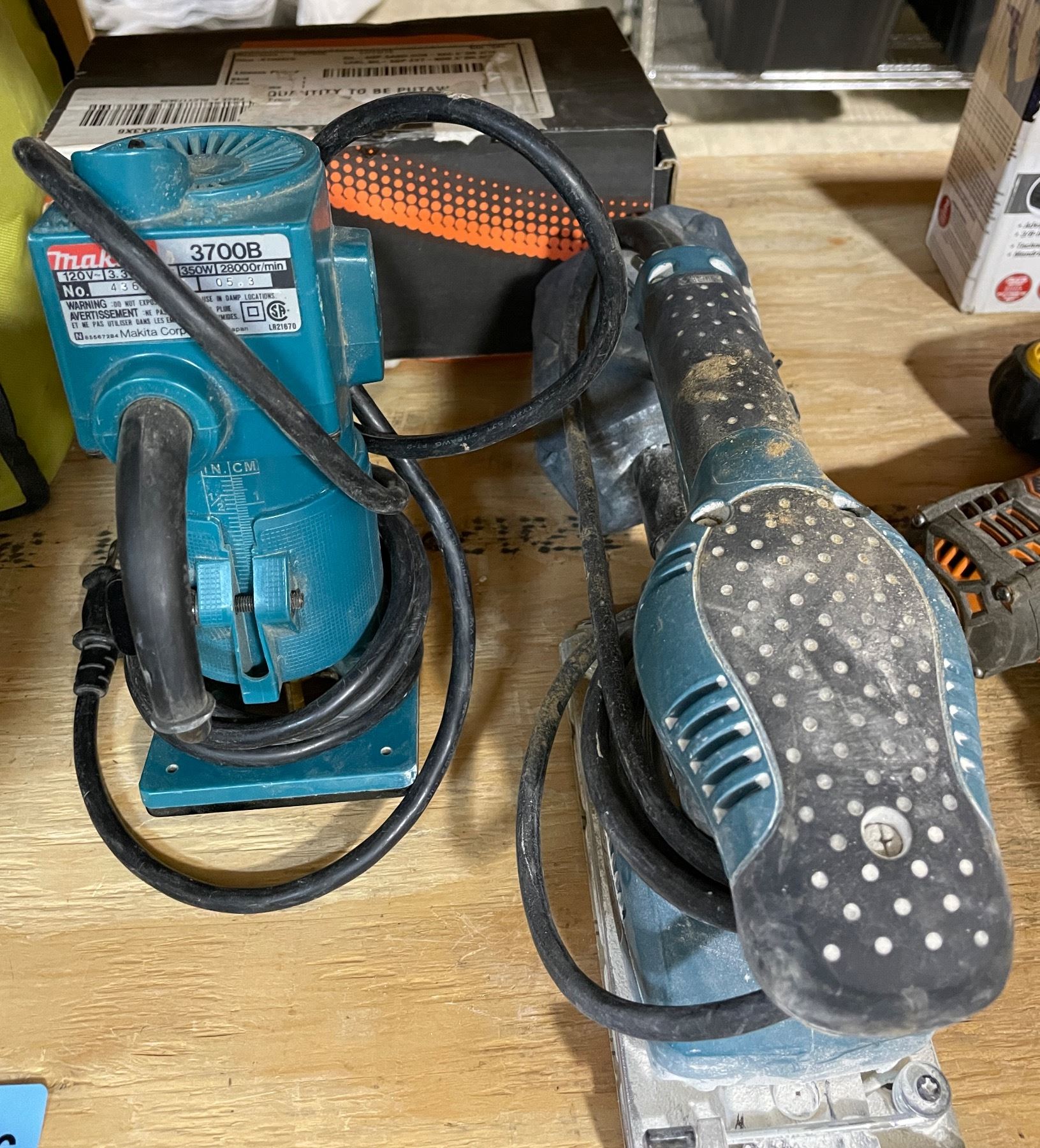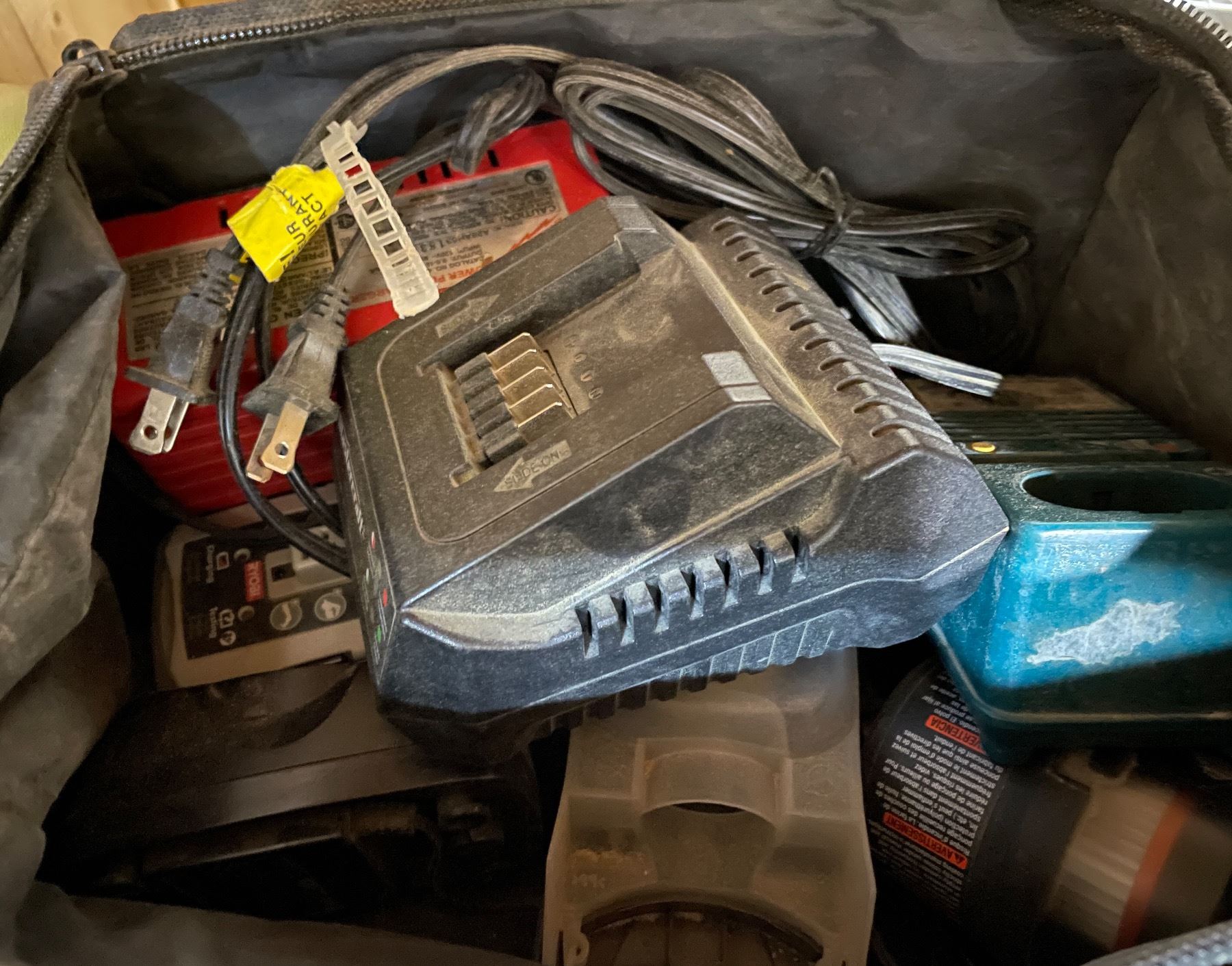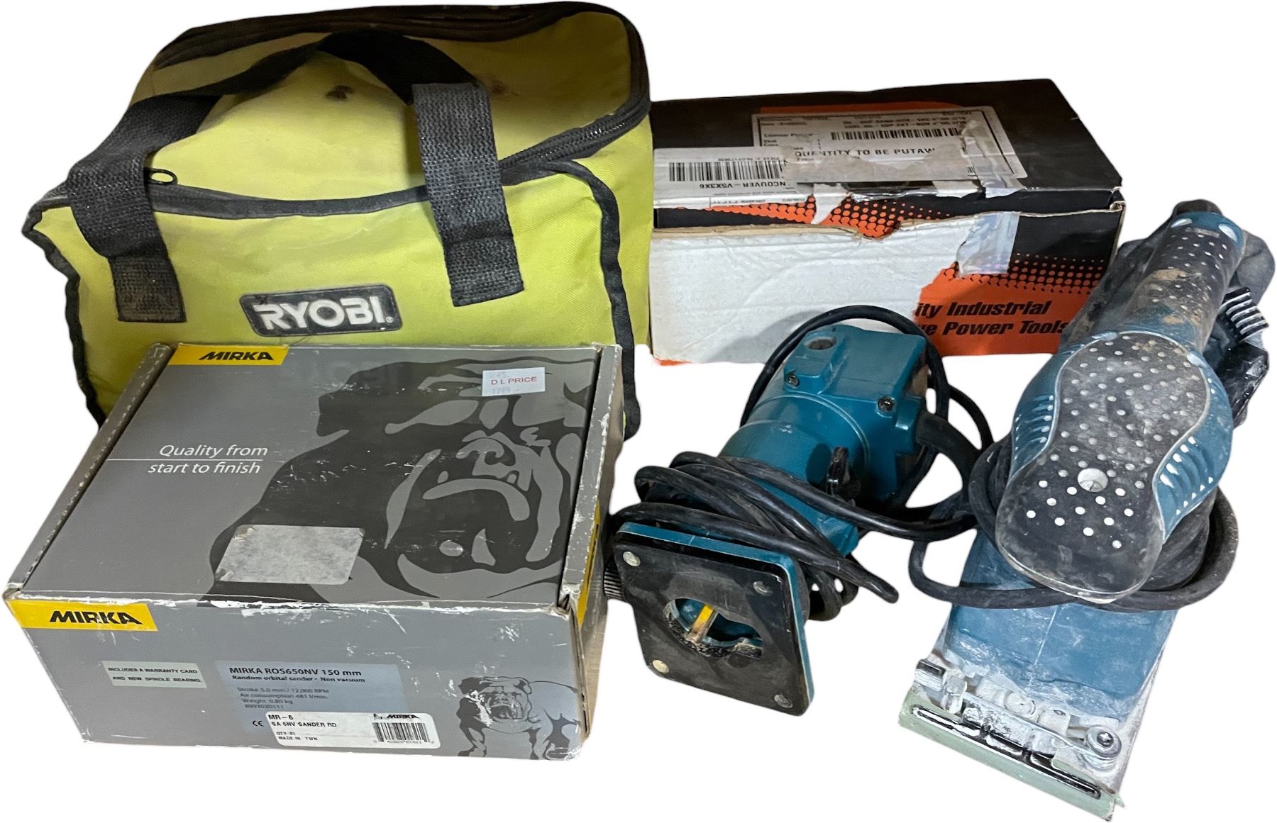 Large Group of assorted Tools - includes RYOBI Bag with Battery Charger & Accessories, Mirka Random Orbital Sander & More