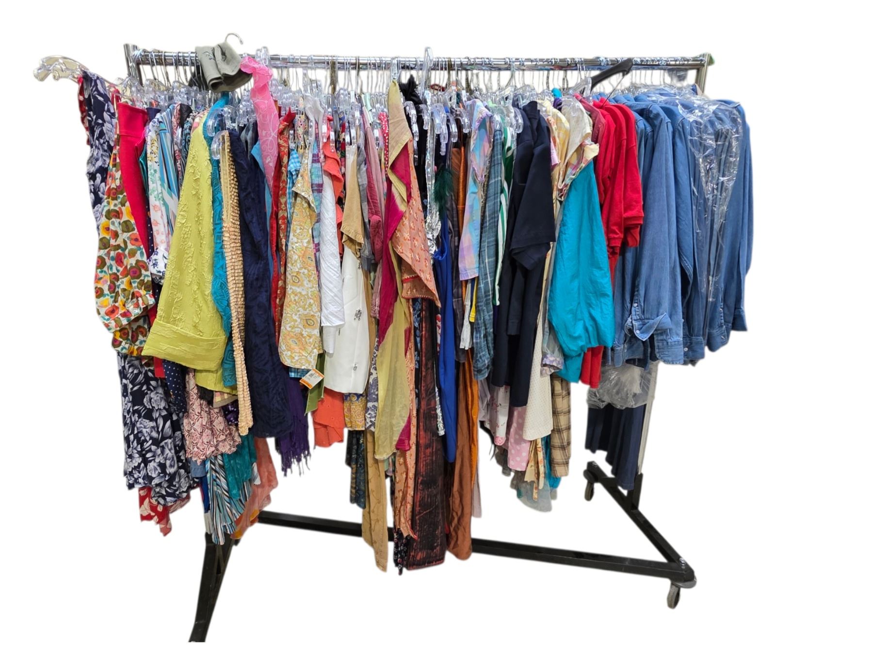 Large Rack of Movie Set Clothing - Chicken Sisters, Shirts, Pants, Sweaters, Etc.