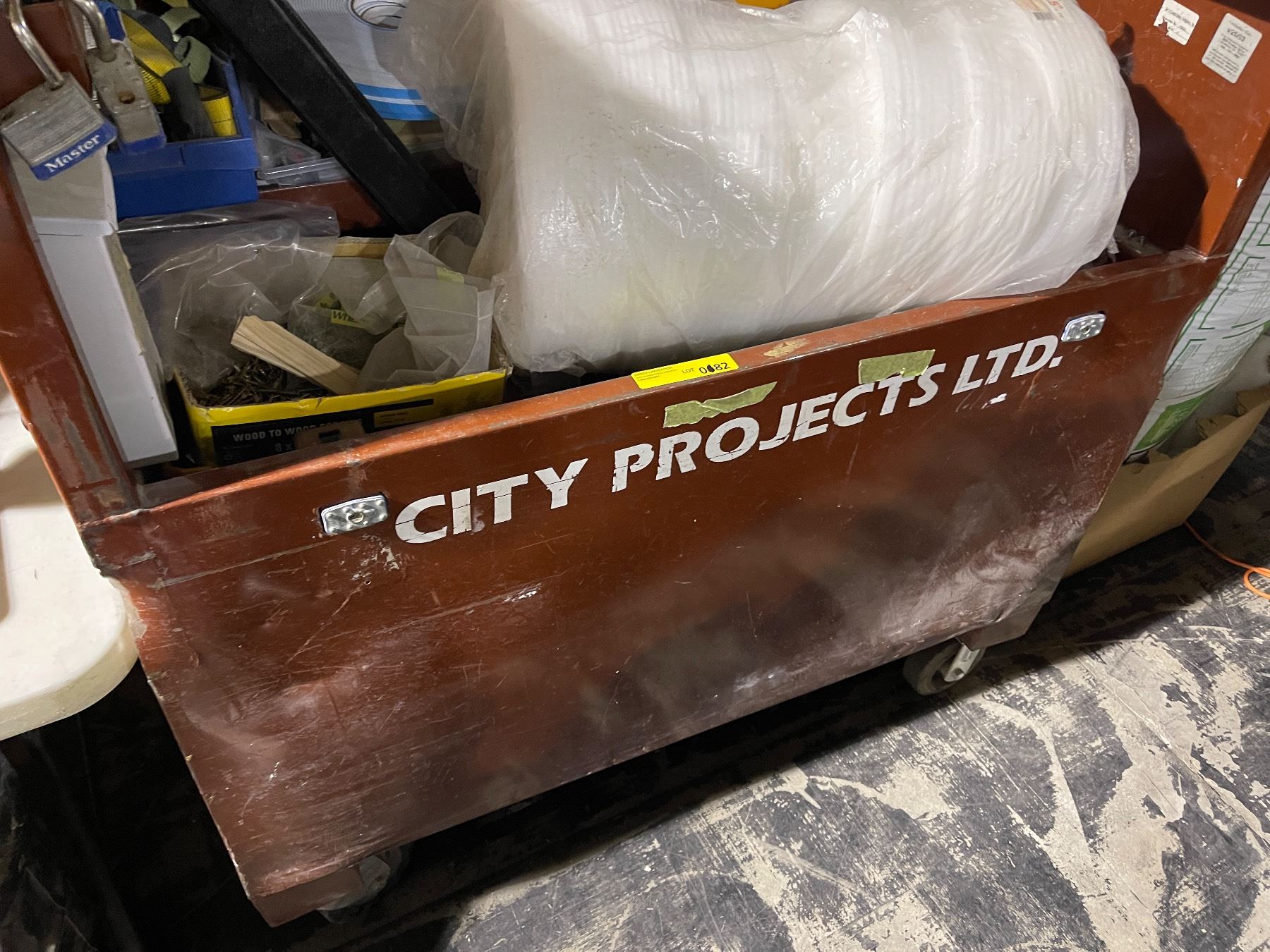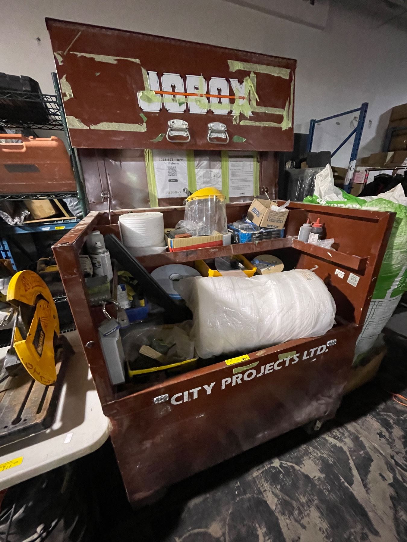 Large Rolling Jobox Steel Jobsite Storage Chest with Assorted Contents