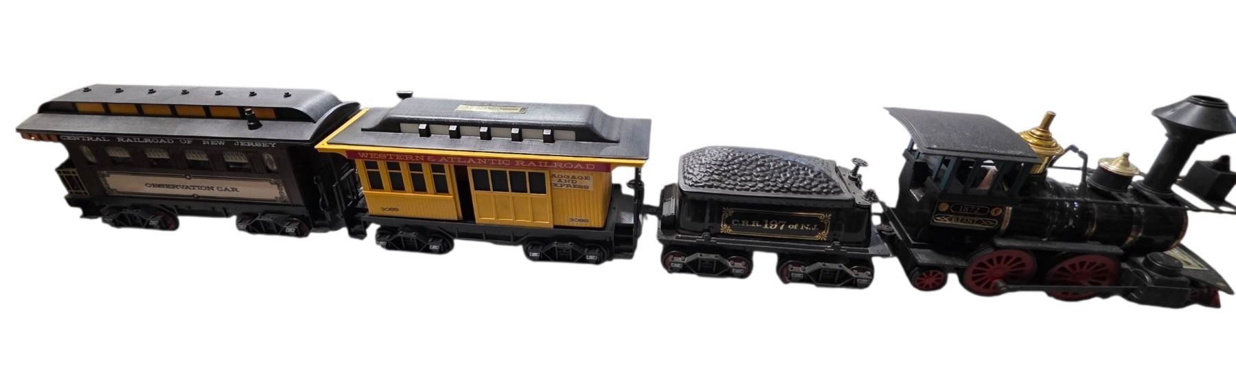Large Set Vintage 1980s Jim Beam Kentucky Straight Bourbon Whiskey Railroad Decanter Set - 4 Pieces