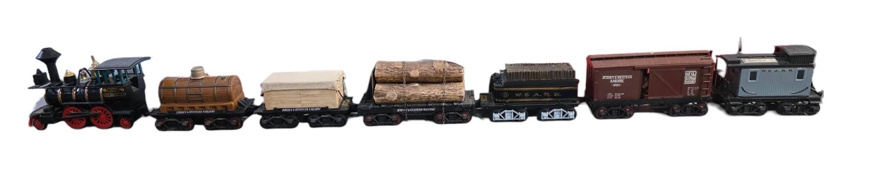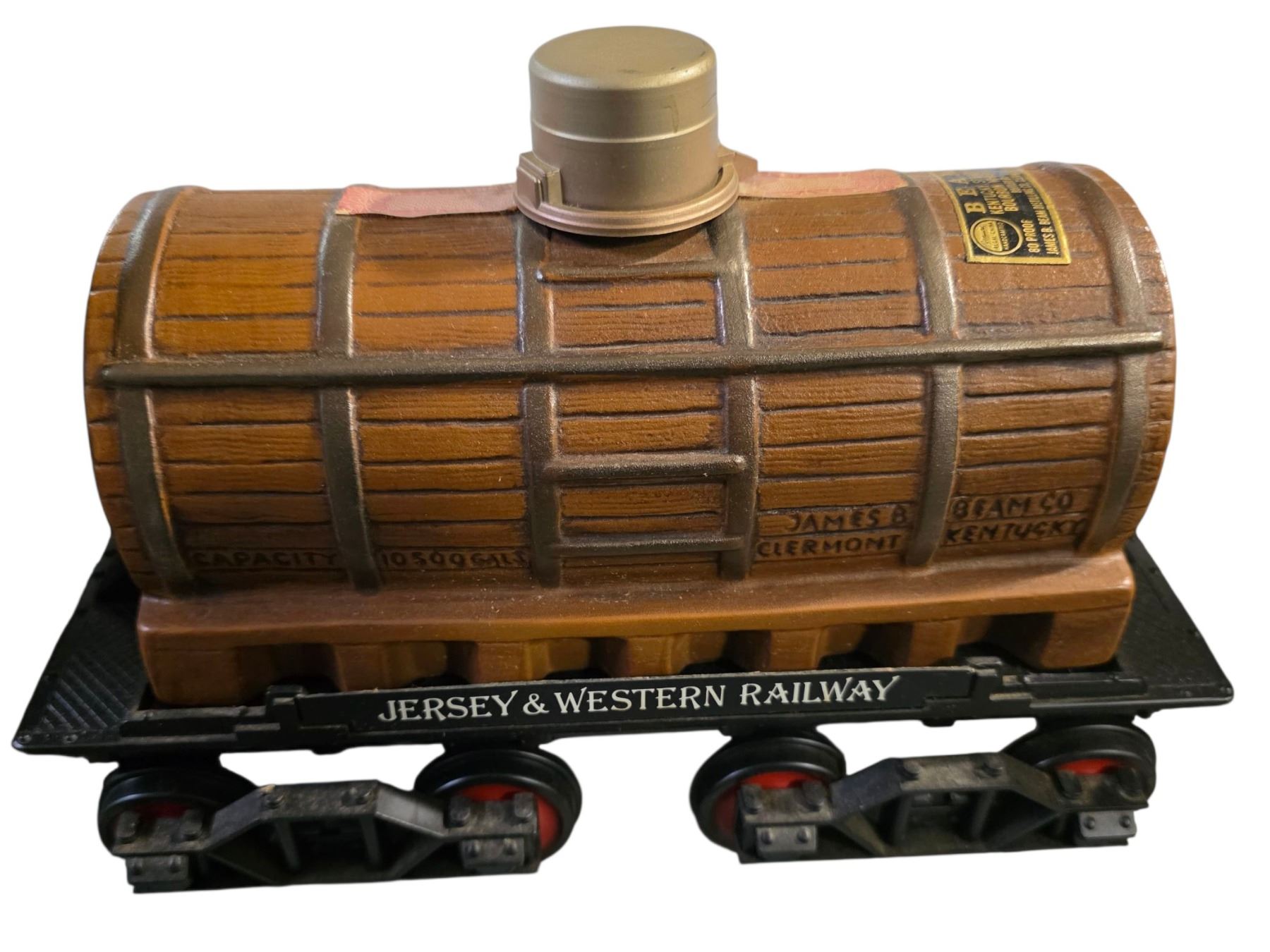 Large Set Vintage 1980s Jim Beam Kentucky Straight Bourbon Whiskey Railroad Decanter Set - 7 Pieces