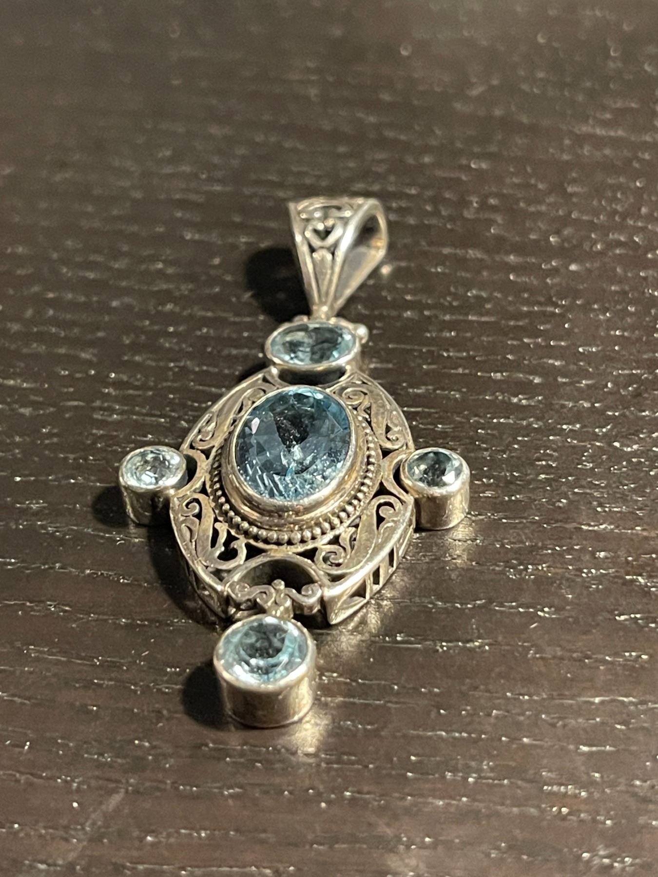 Large Sterling Silver Faceted Blue Topaz Crystal Pendant - 1.5" x 2.5" - Total weight including gemstones: 15.5 grams