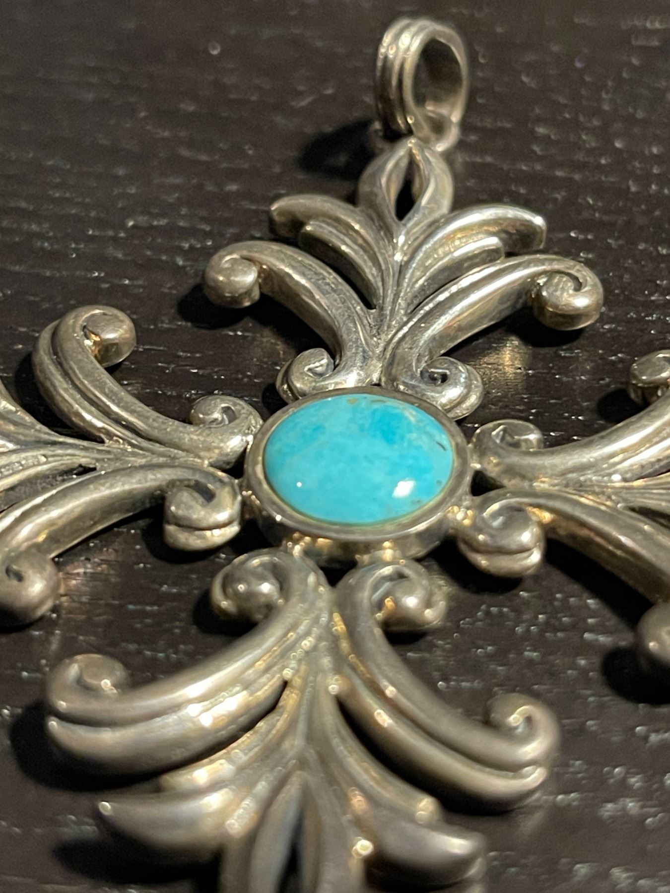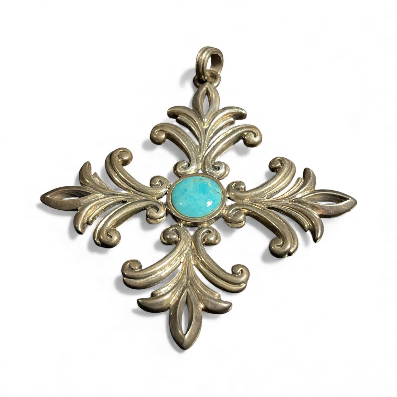 Large Sterling Silver & Turquoise Pendant - 3" x 3" - Total weight including turquoise: 40 grams