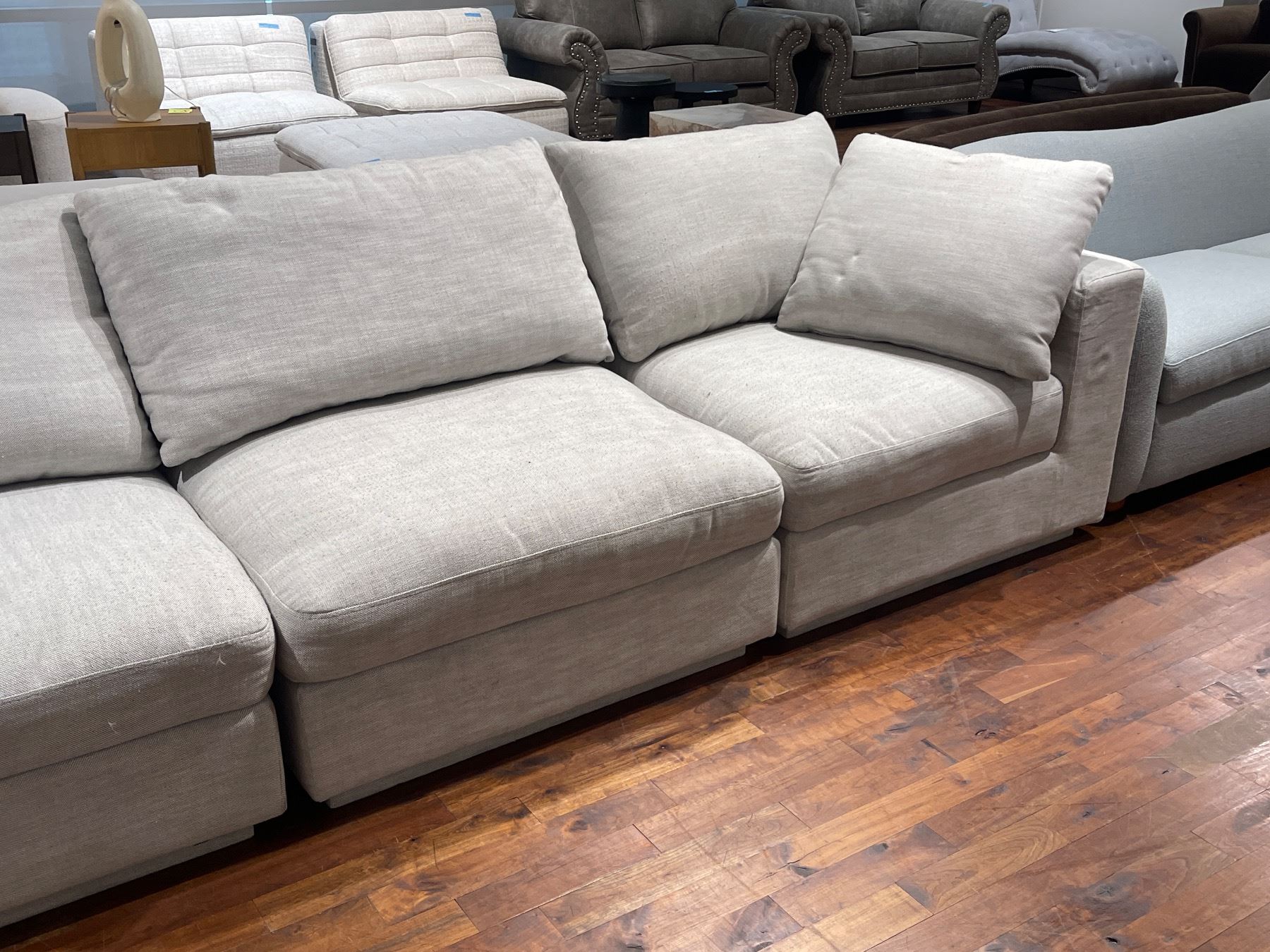 Large Upholstered Modular Sectional Sofa - Light Grey Fabric - Approx. 114" L x 38" W x 26" H