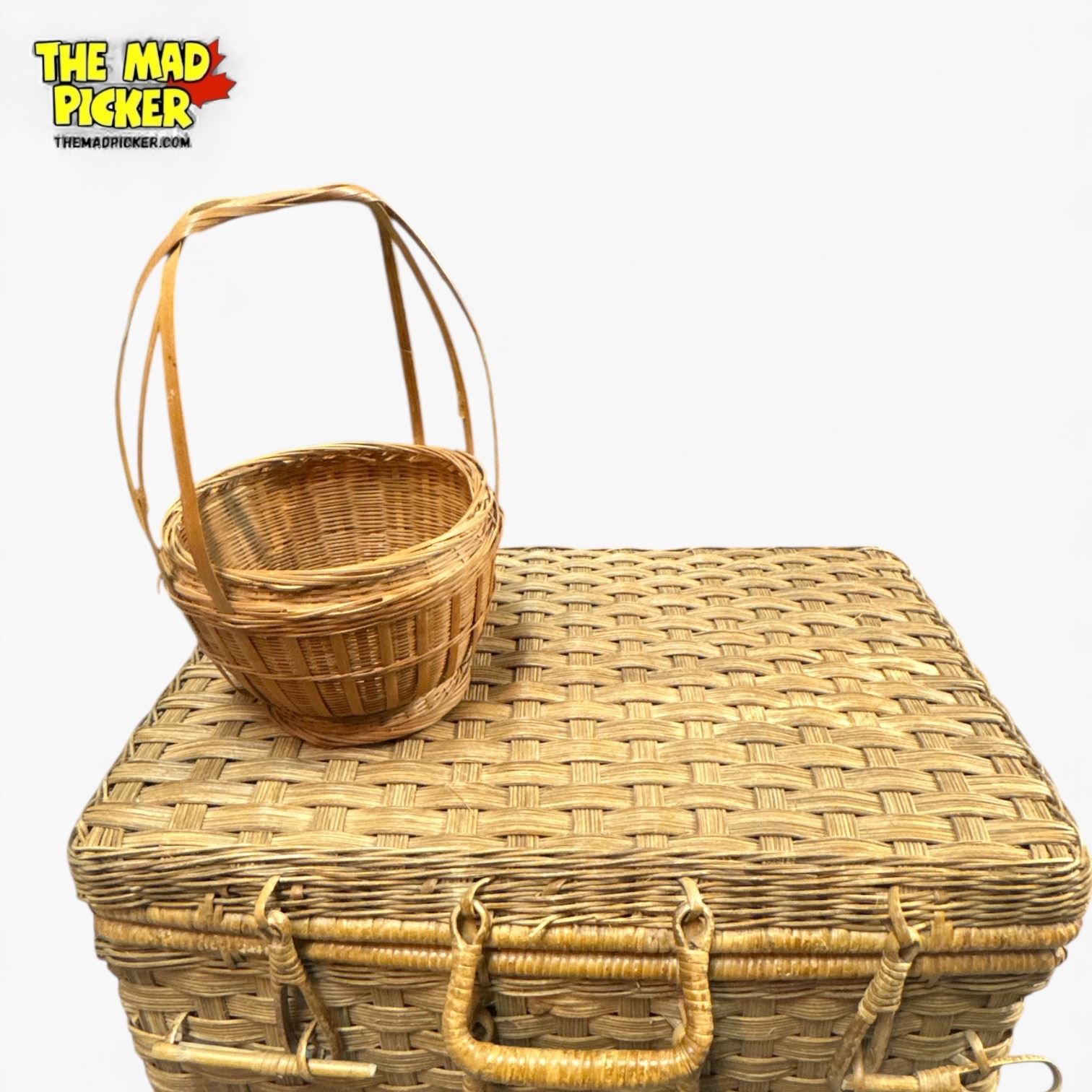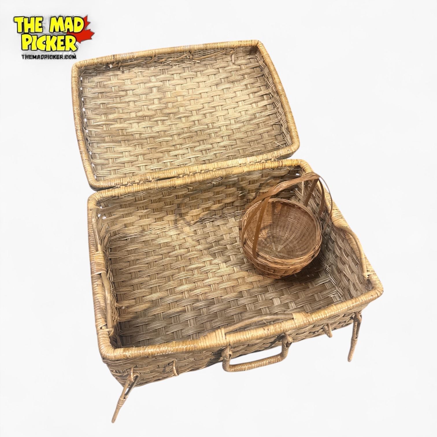 Large Vintage-Style Wicker Picnic Basket with Lid and Handles 18x13x 8in + Matching Smaller Basket