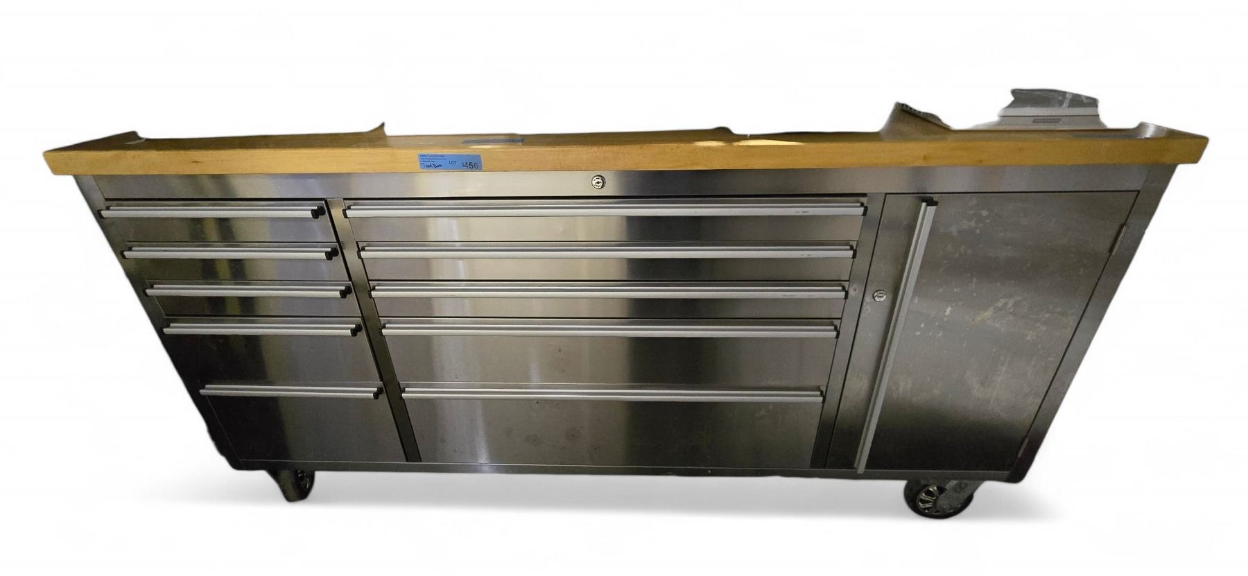 Large Wood Top Metal Tool Box Approx. 6ft L (Good Condition)