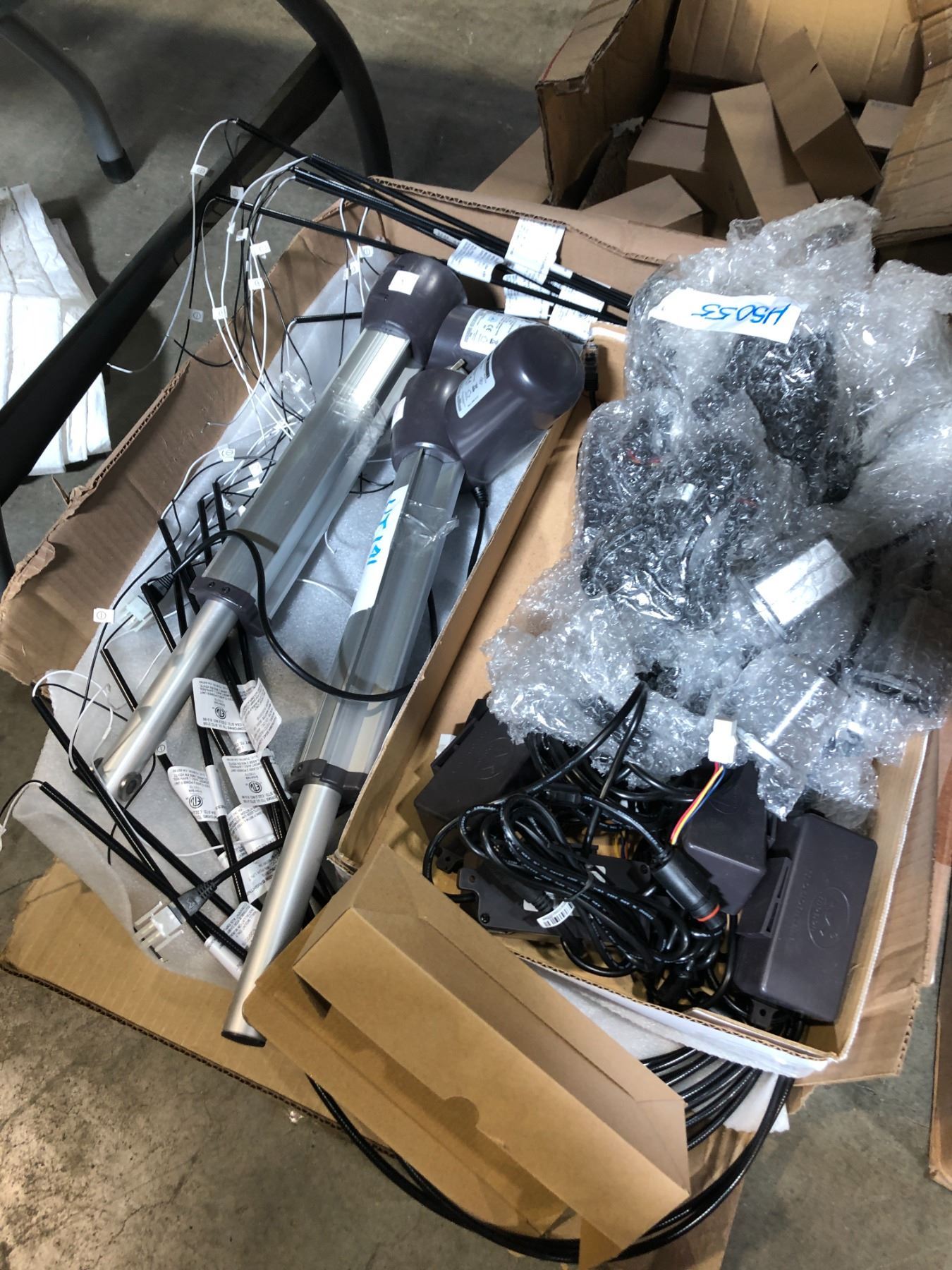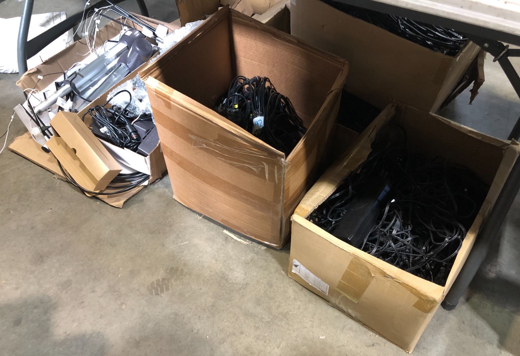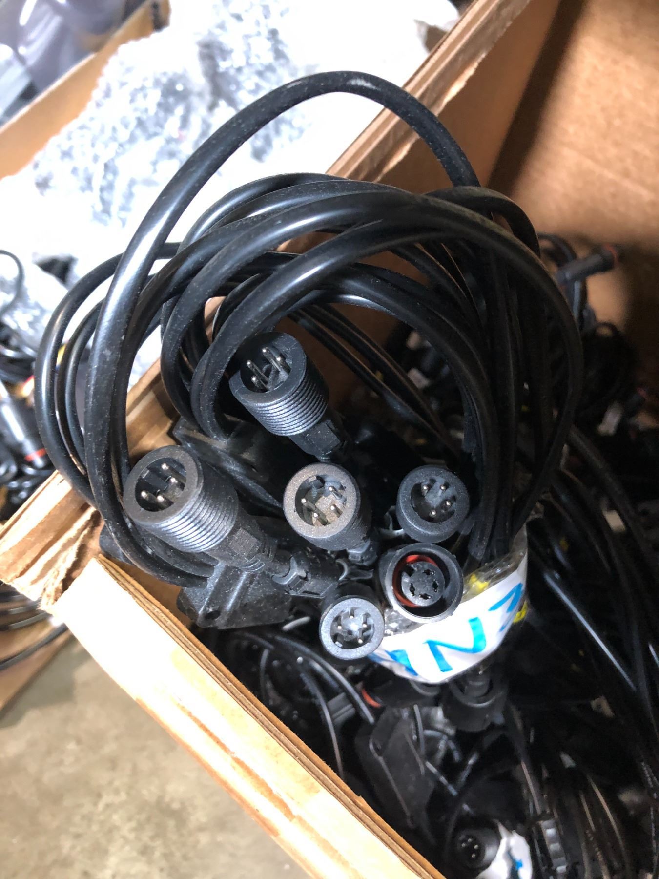 Large group of EK0 M1 camera adapters, LED light cables, standard power cables, power supplies