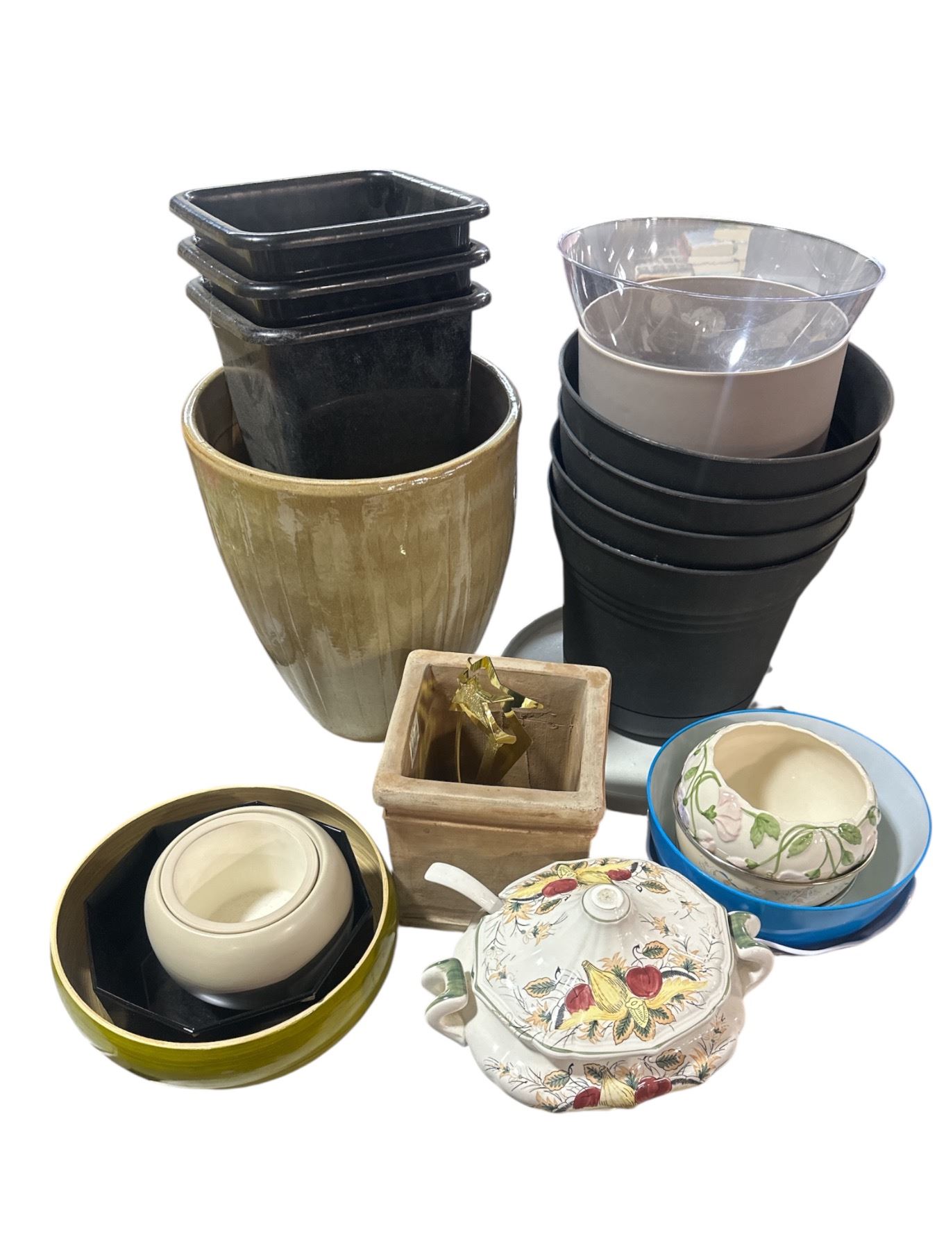 Large group of Plant Pots - includes ceramic 15" Creme Pot/Matt Kaki 7" Round NEW Pot & More