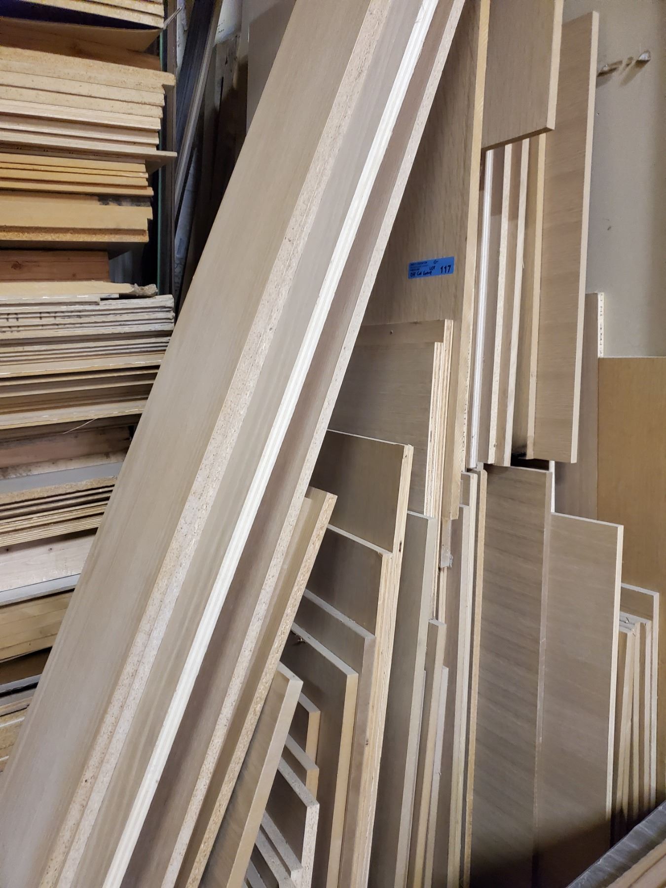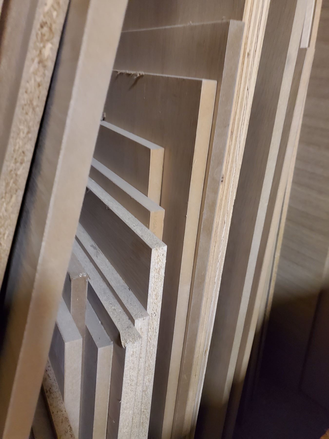 Large group of plywood & MDF core 3/4" veneered off-cuts + Solid wood moldings, etc.