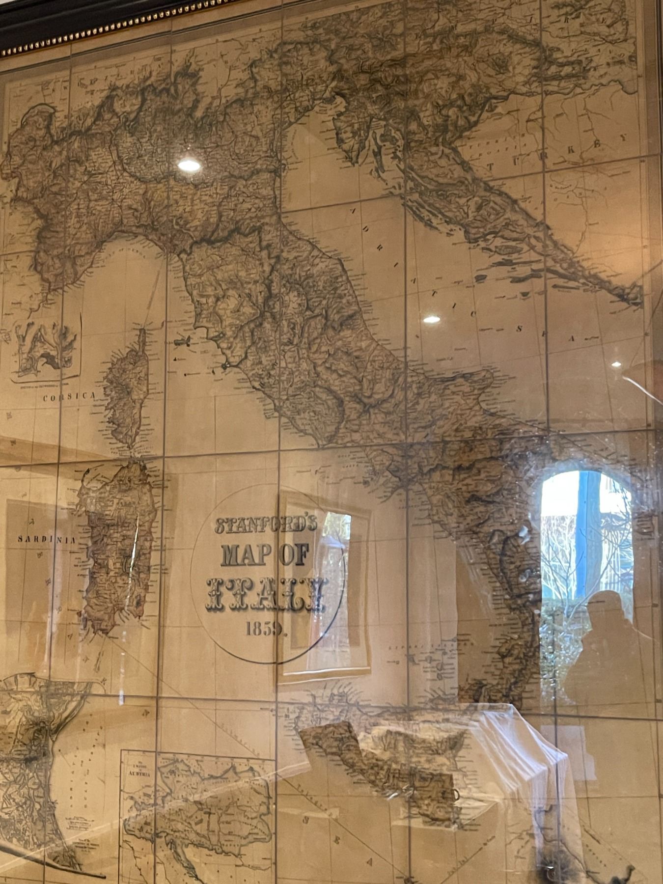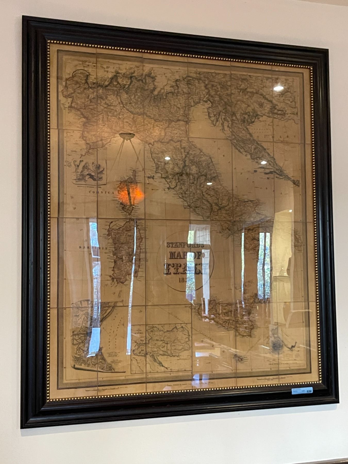 Large vintage framed print "Stanford's Map of Italy" - 64.5x55"