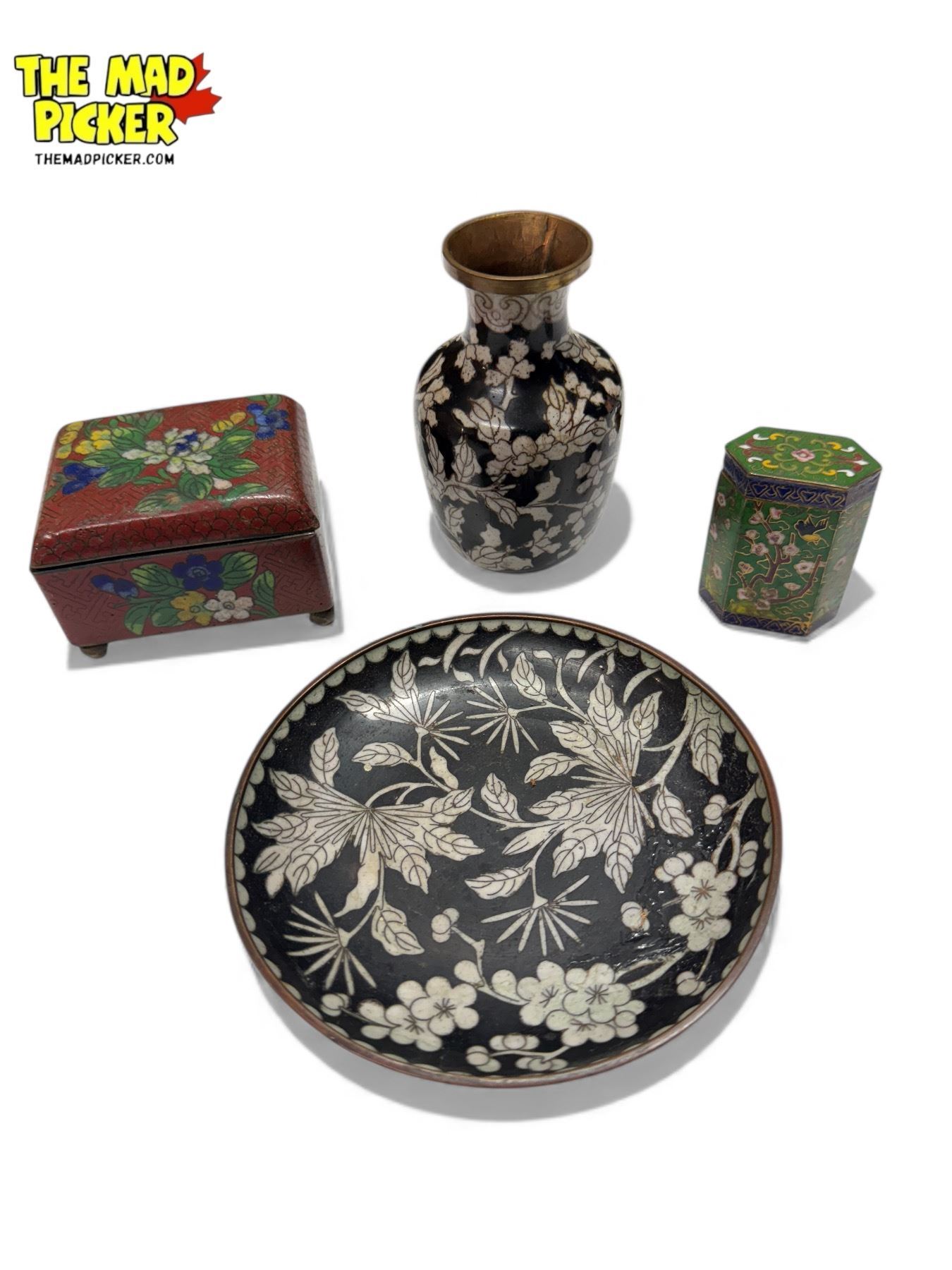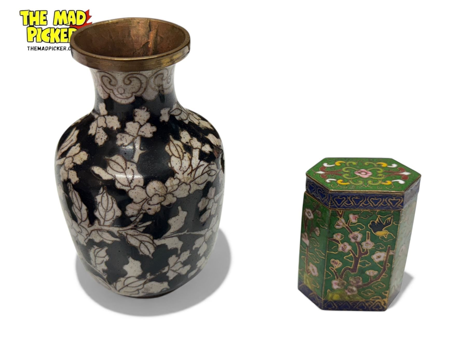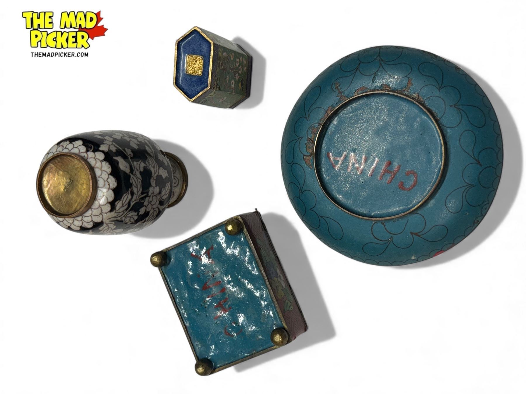 Late 19th & Early 20th Century Chinese Cloisonne: Vase, Boxes, & Plate