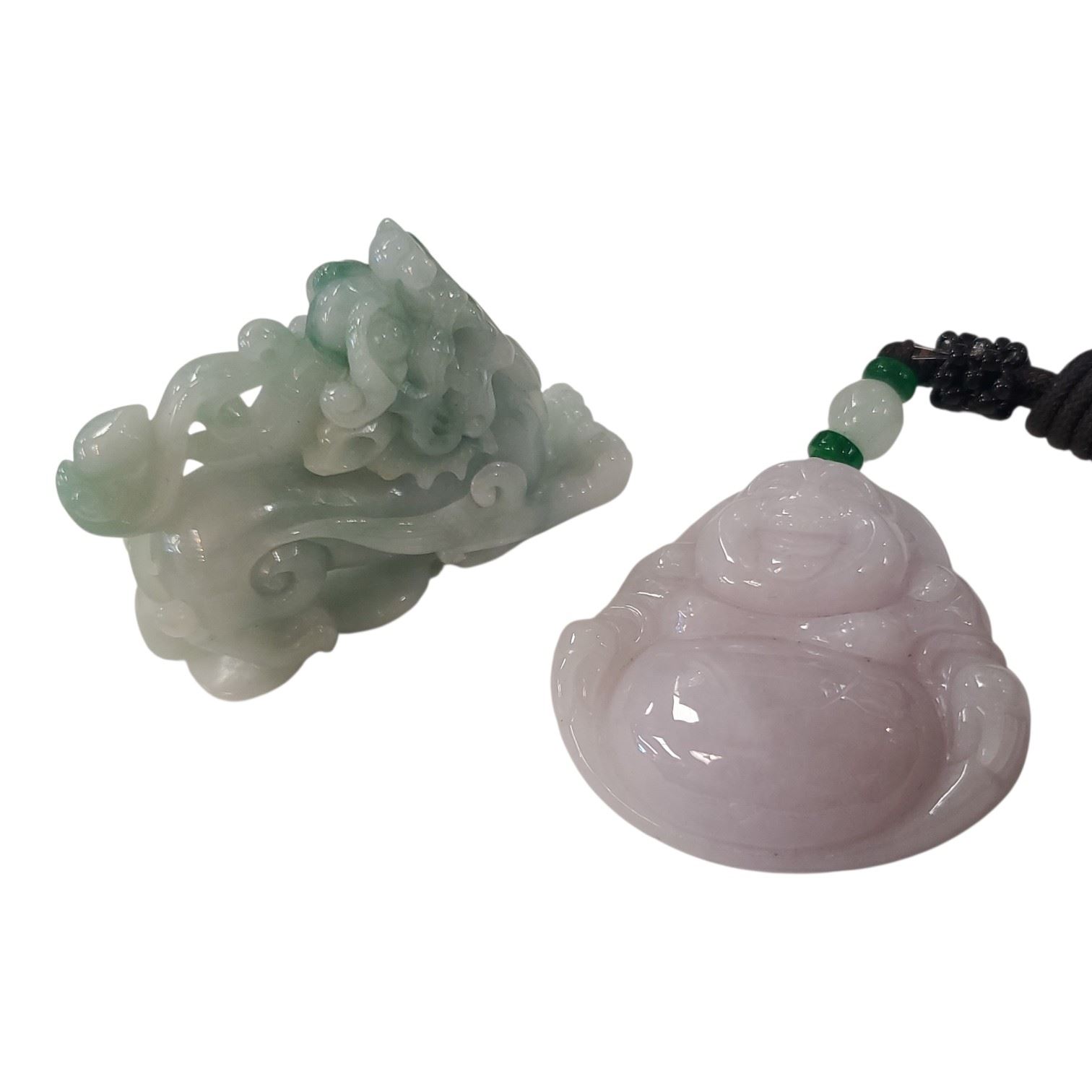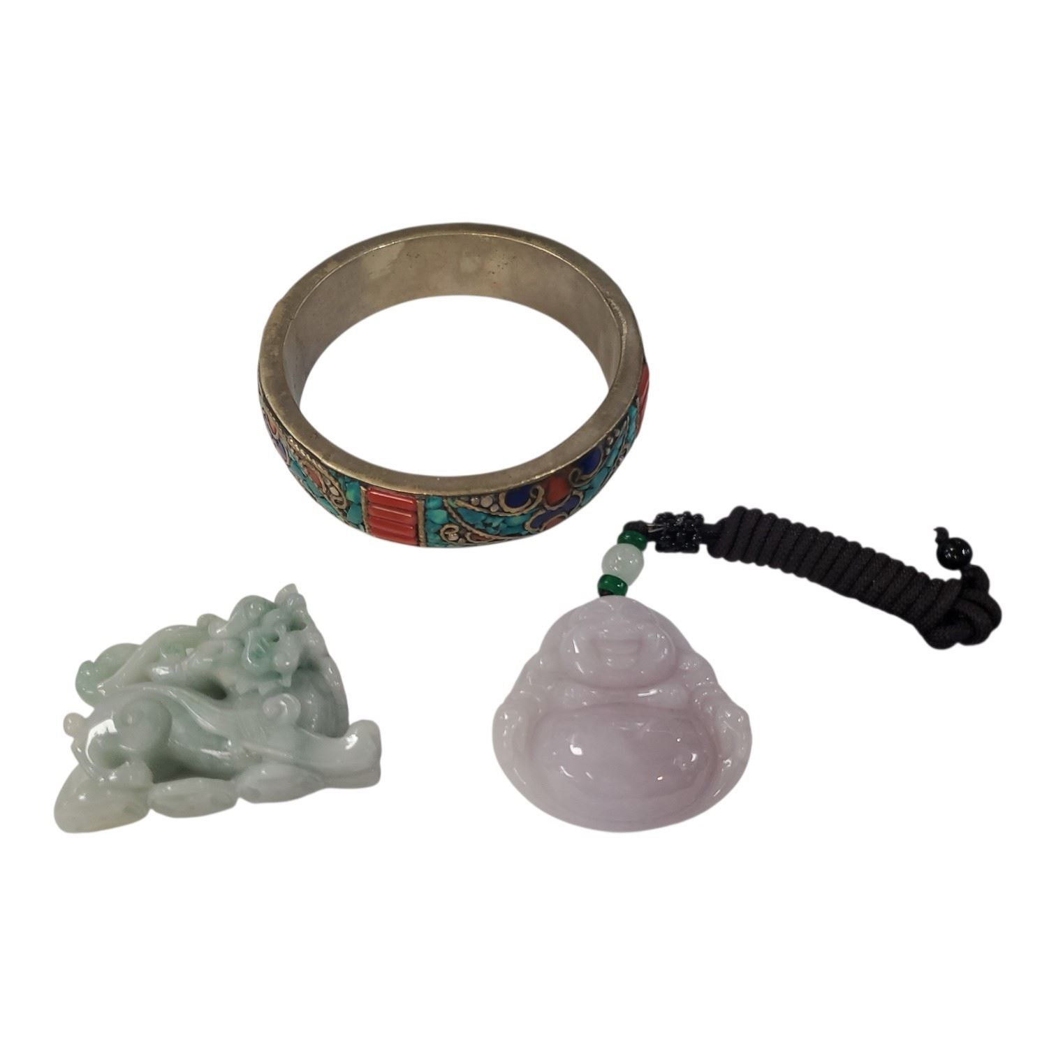 Lavender Jade Buddha, Jadeite Mini Figurine & Stone Inlaid Tibetan Bangle Bracelet