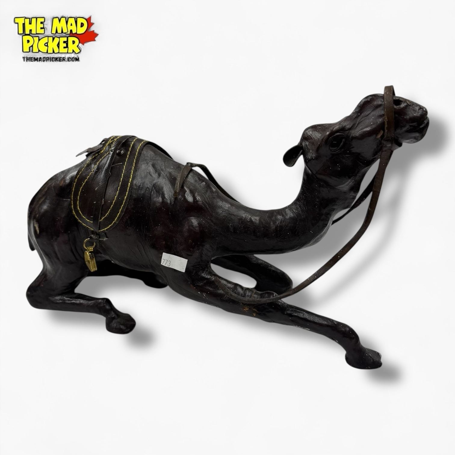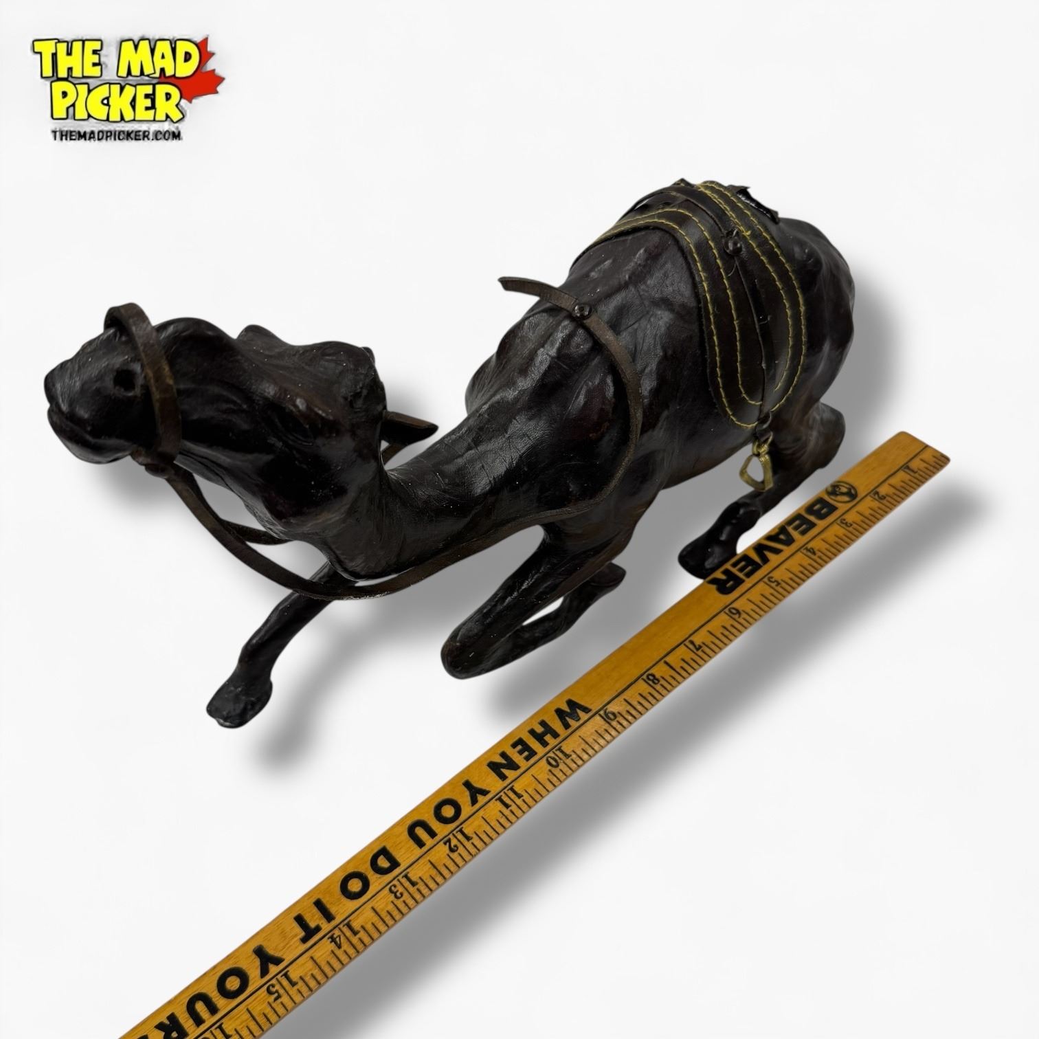 Leather Caravan Camel Statue with Saddle - 15" long x 6" tall