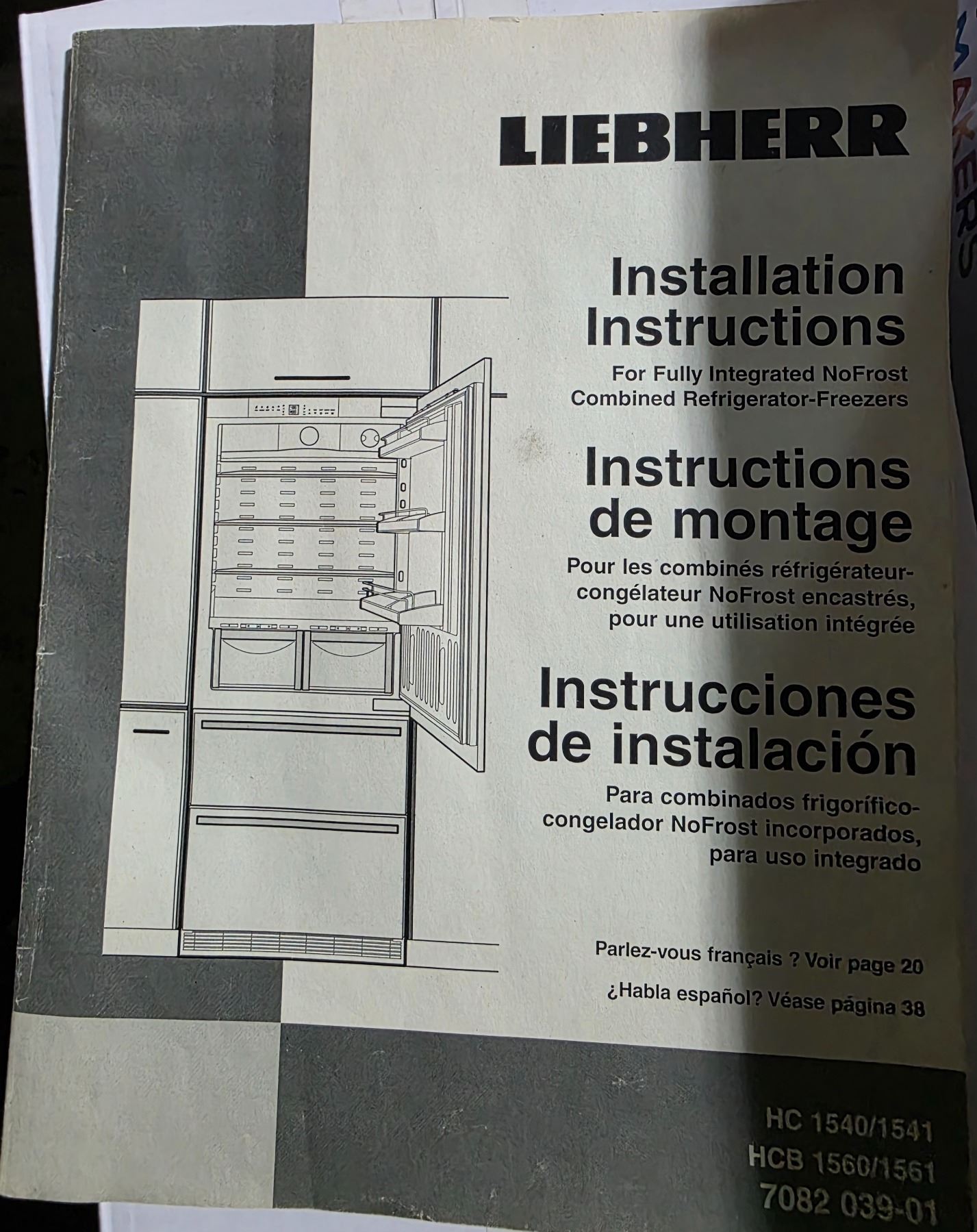 Liebherr Build-In 1-Door Refrigerator/Freezer w/ Dark BLue Gold Frame - Model HC 1540/1541, R.V. $8,999 (Like NEW)