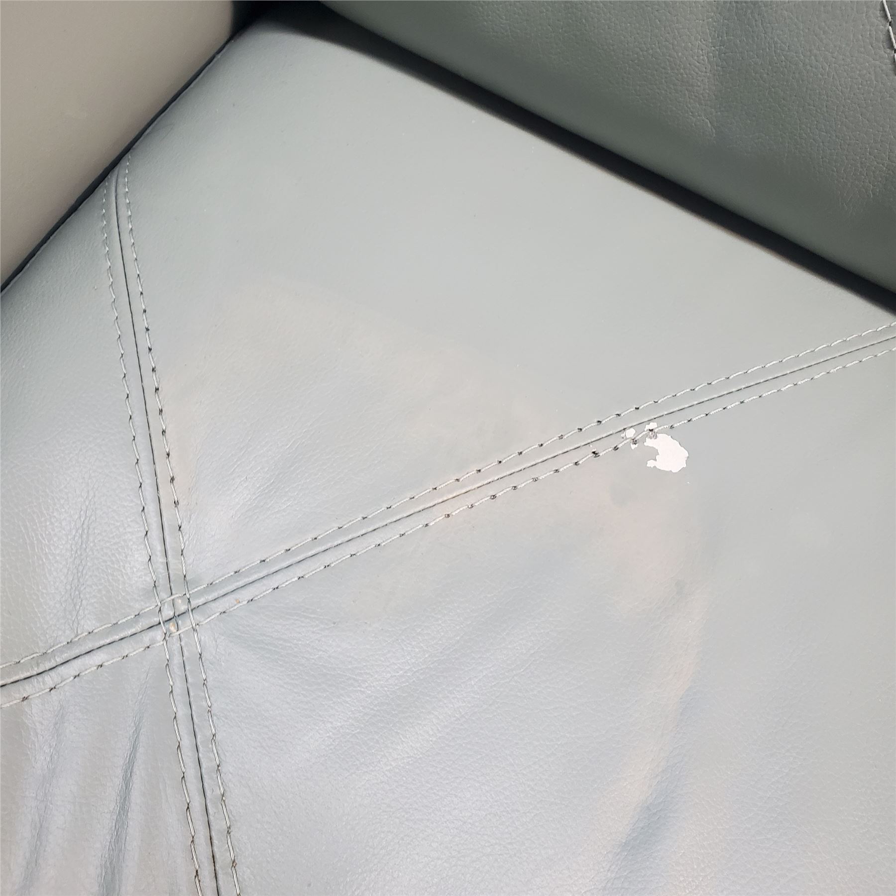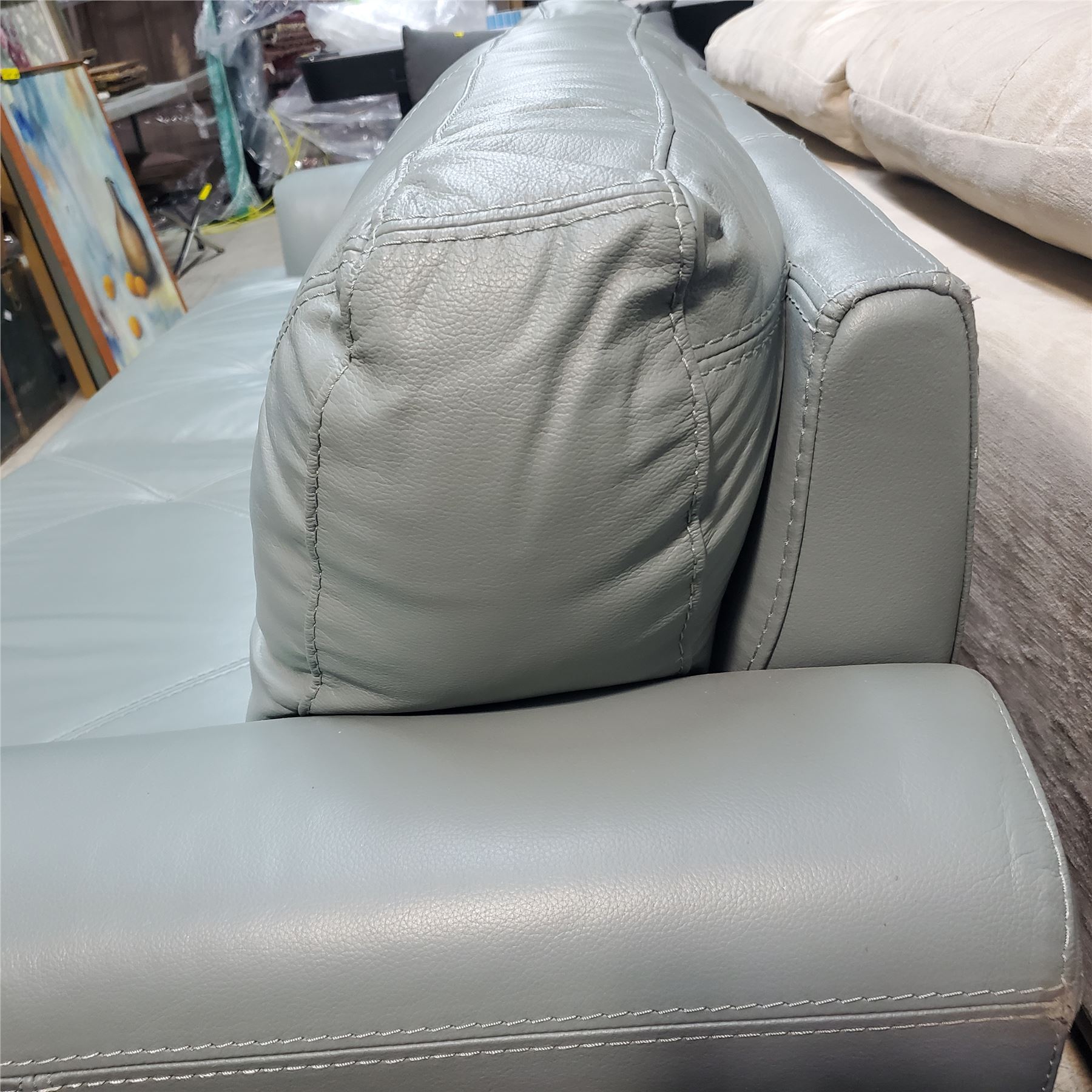 Light Blue Leather Sofa, Approx. H33" x W85" x D35"