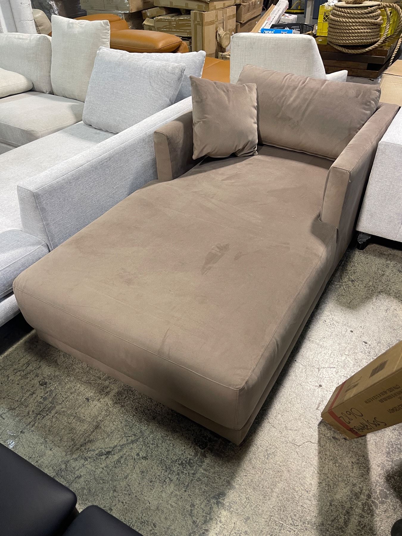 Light Taupe Fabric Chaise Lounge, Approx. H25" x W39" x L75"