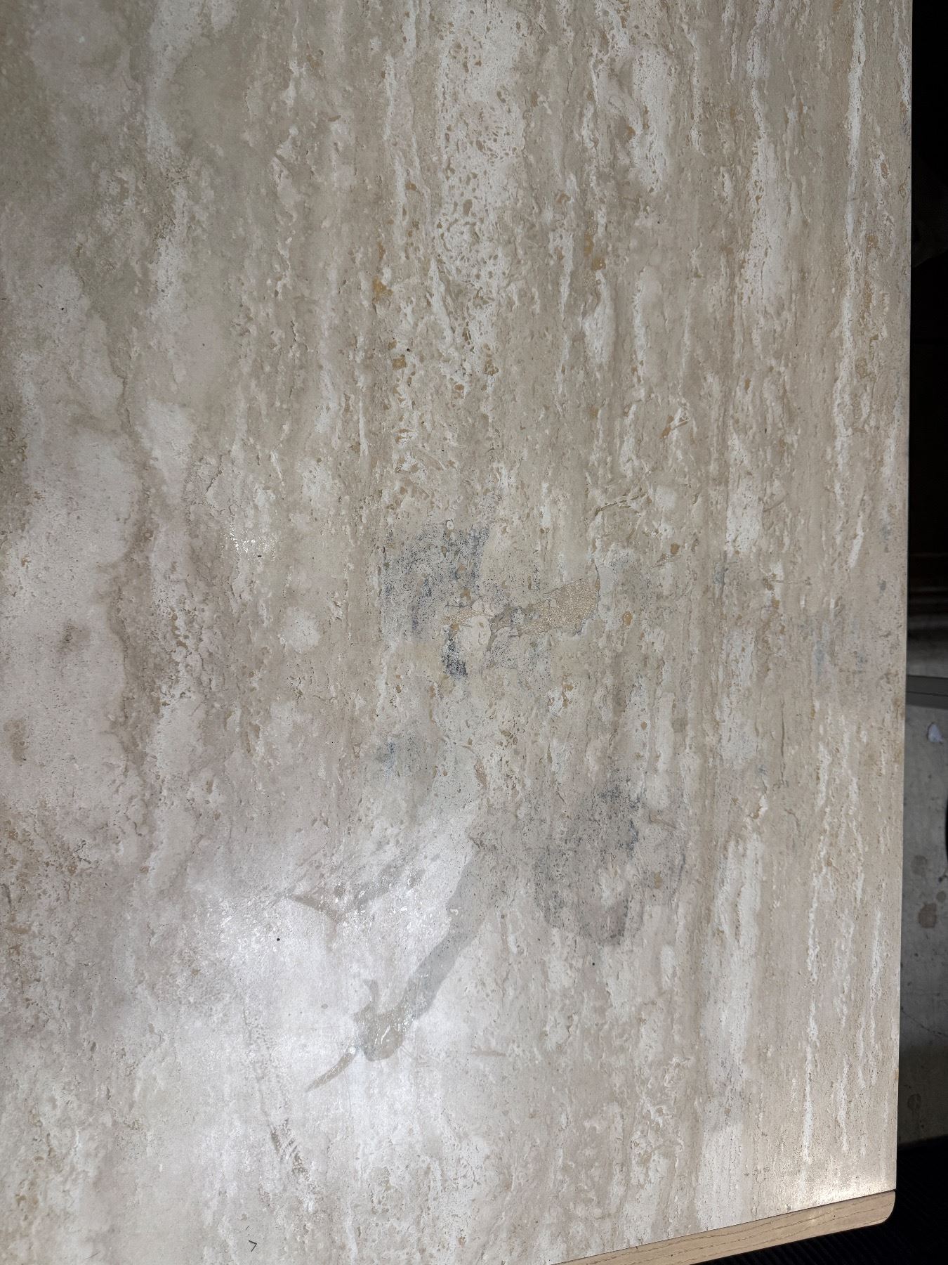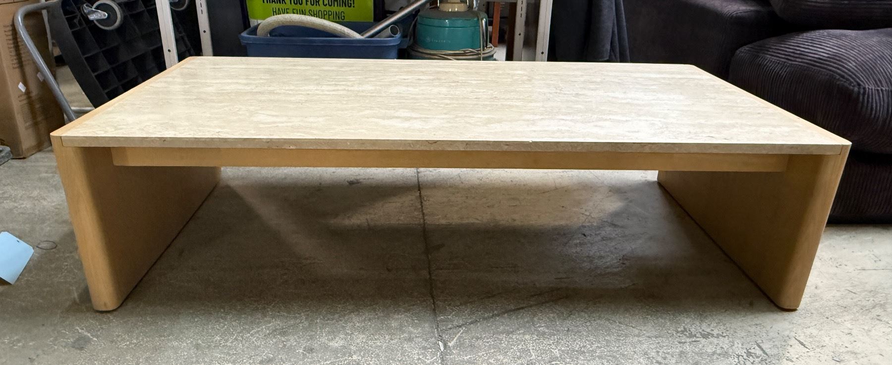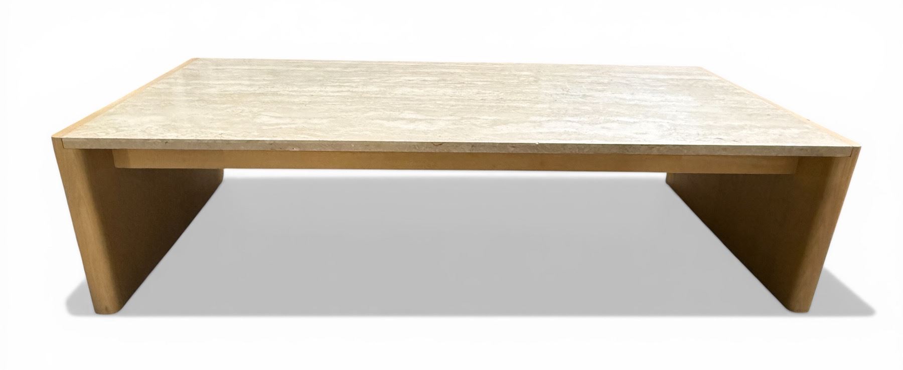 Light Wood and Faux-Marble Coffee Table H15" x 59" x 27.5"