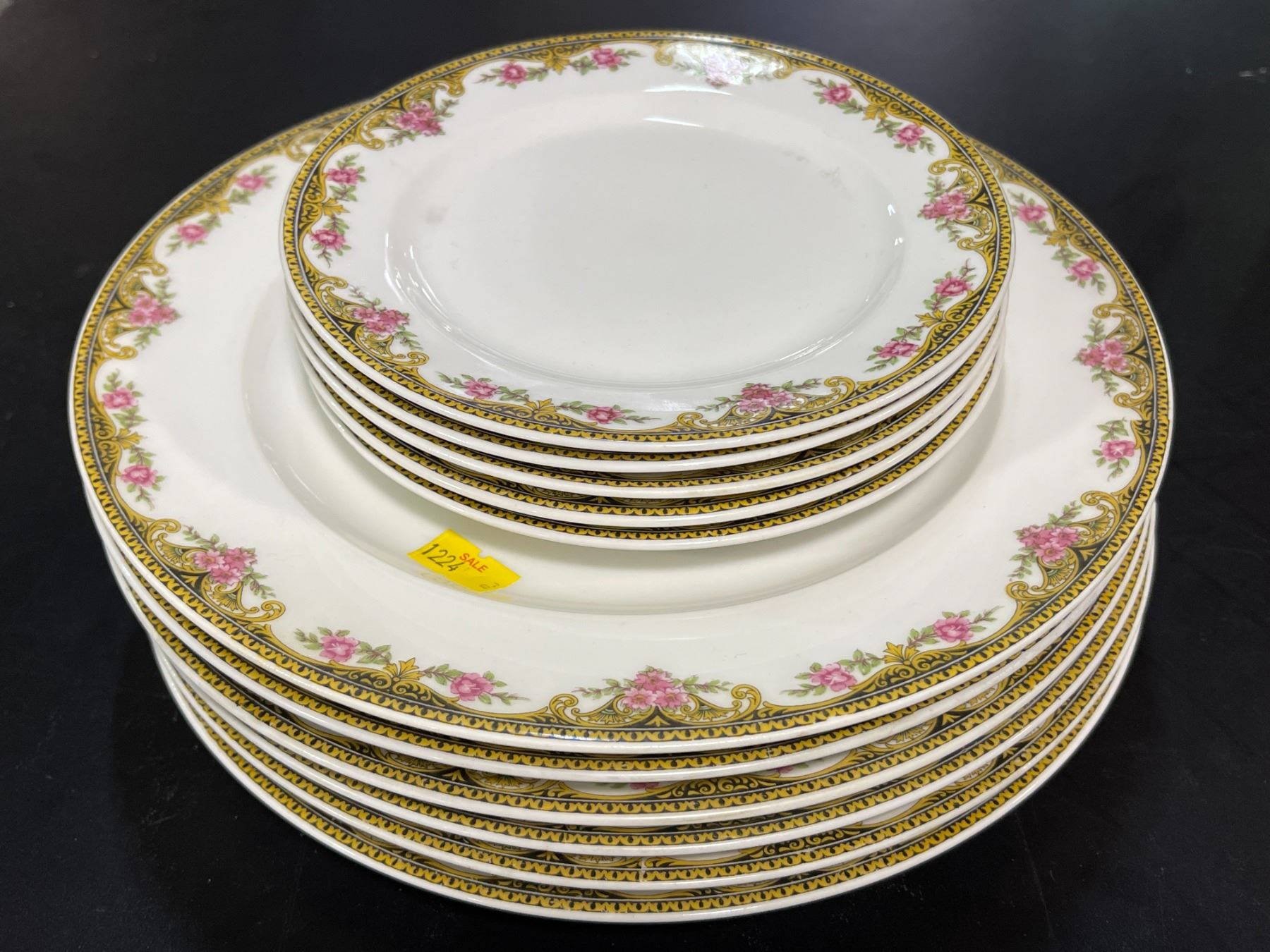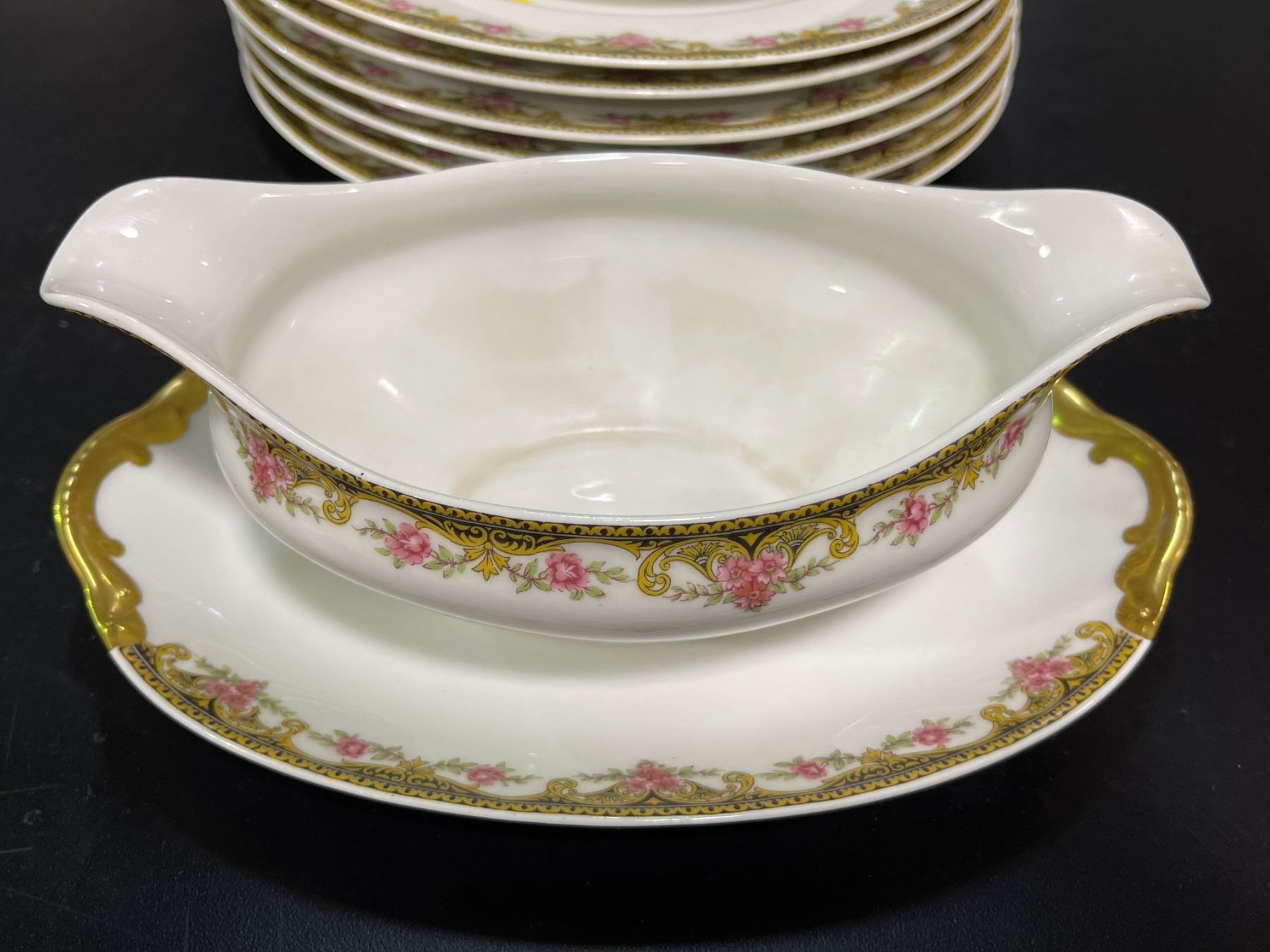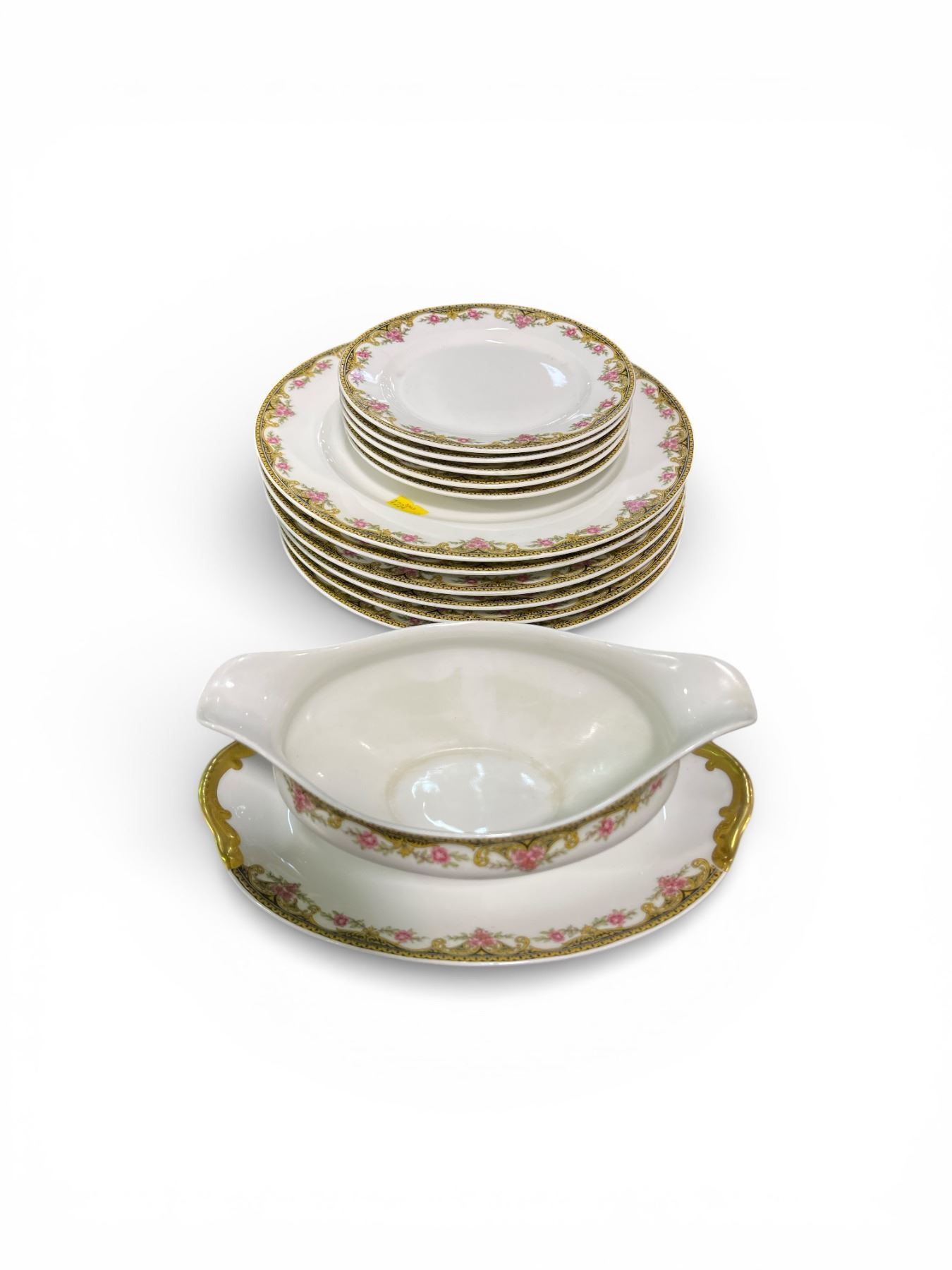 Limoges Sauce Boat & 11 Plates - 5 side plates and 11 dinner plates (2 dinner plates are chipped)