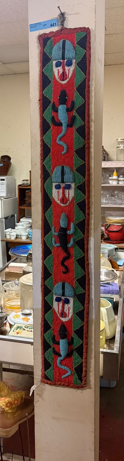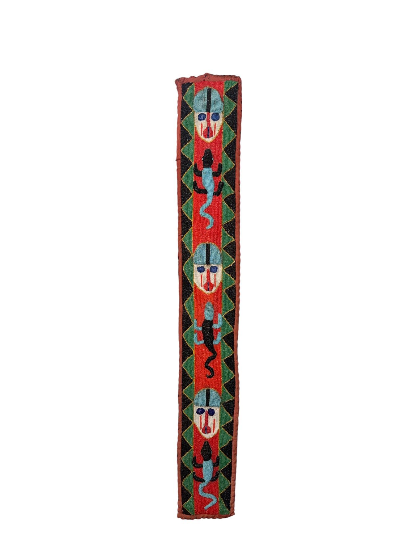 Long Handcrafted Folk Art Textile Wall Hanging with Mask Motif