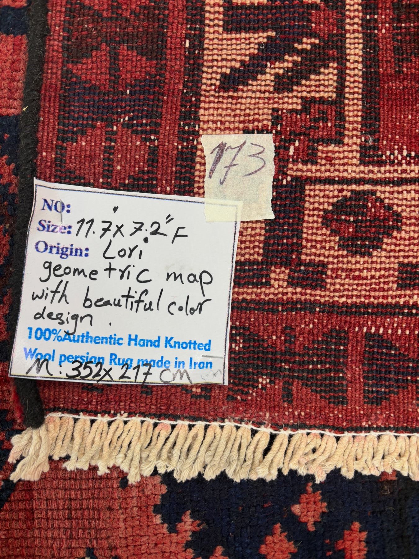 Lori 100% Authentic Hand Knotted Wool Persian Rug Handmade in Iran geometric map With beautiful color design (These carpets have been washed professionally, and for this reason there are no tears or dirt in this carpet and it will be delivered to you clean and smooth. Don't miss the opportunity to buy such a carpet) Size 11.7' ×7.2'