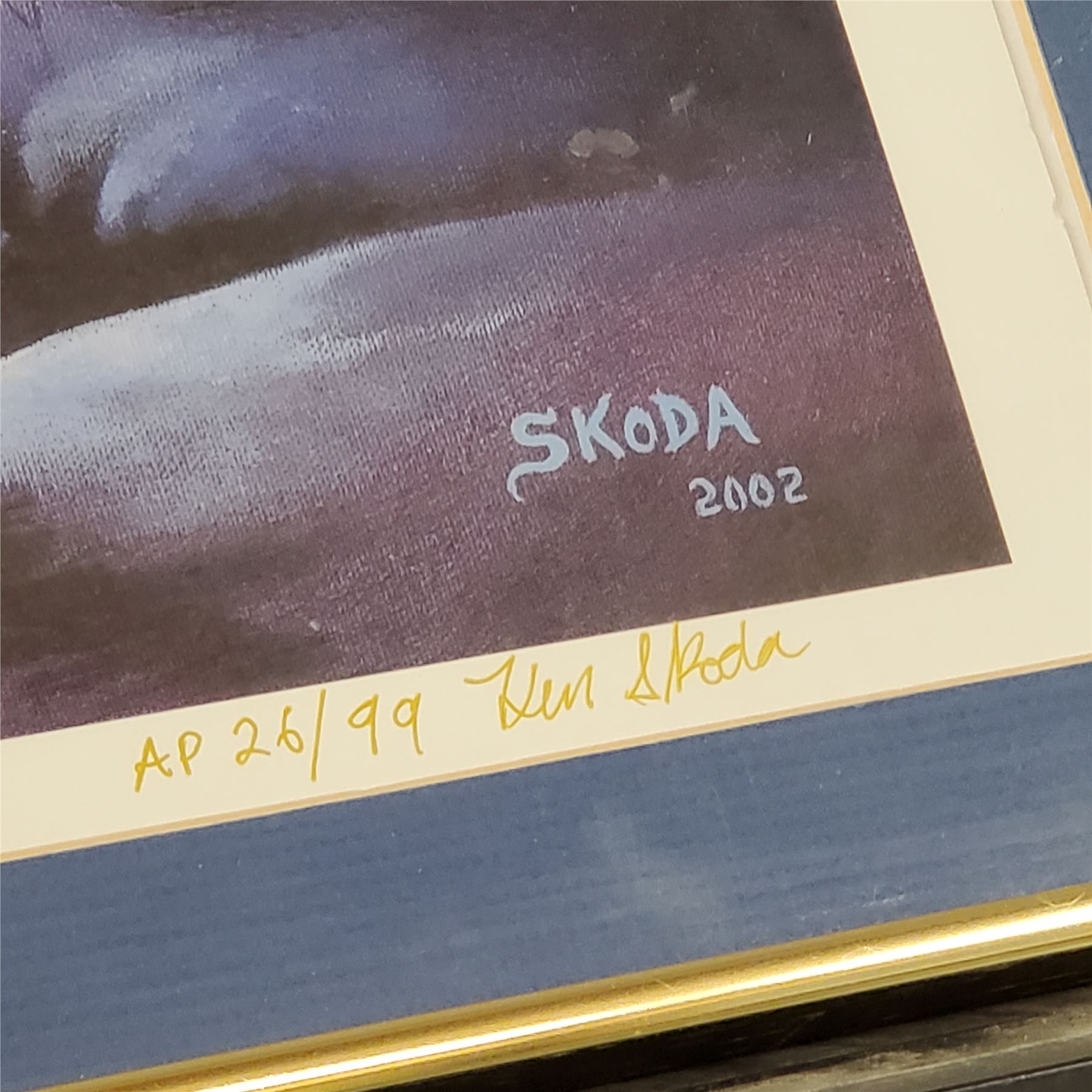Lost Lake print by Skoda, created in 2002. This is an Artist's Proof (A.P.) numbered 26/99. The print measures 28.5x28.5-Inch. Features Skoda's signature and detailed artistry. Item is as pictured.