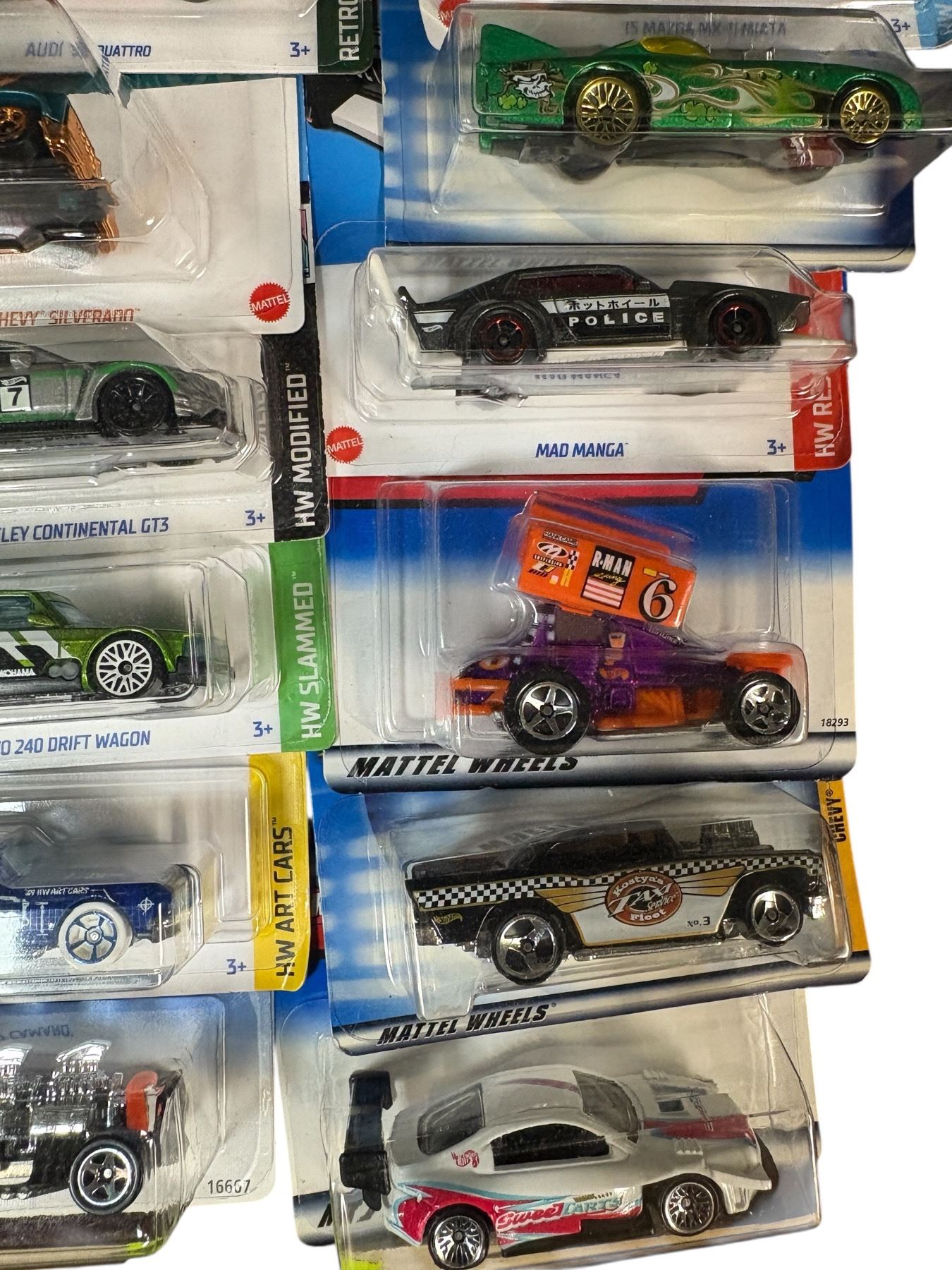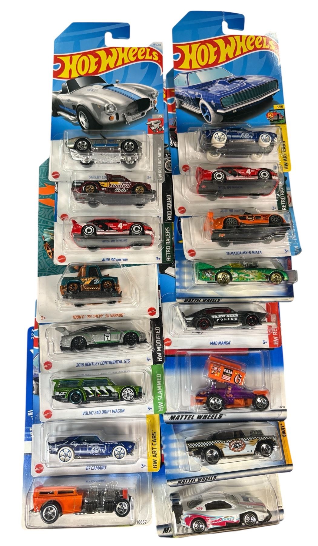 Lot of 16 Hot Wheels diecast vehicles in 1:64 scale. Includes a mix of sealed cars and trucks in assorted models. All items remain in original packaging. Manufactured by Mattel. Suitable for collectors or enthusiasts of modern diecast vehicles.