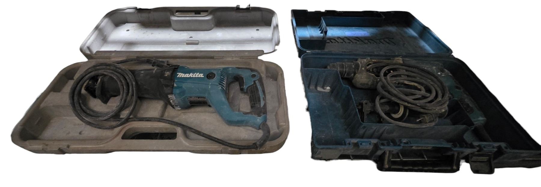 Lot of 2 Makita Corded Power Tools incl. Reciprocating Saw & Rotary Hammer Drill w/ Cases