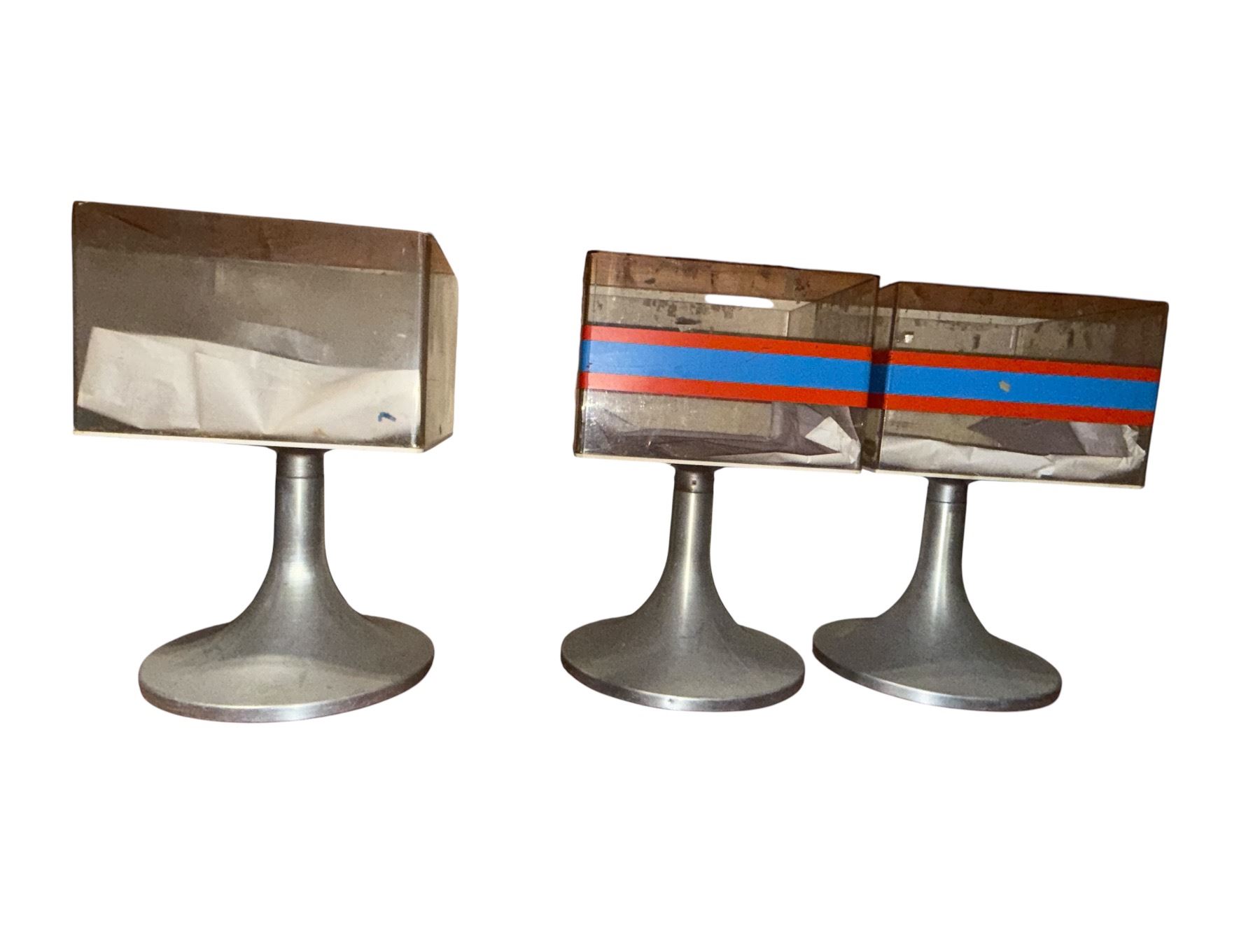 Lot of 3 Vintage Mid-Century Modern Clear Lucite & Aluminum Suggestion Boxes