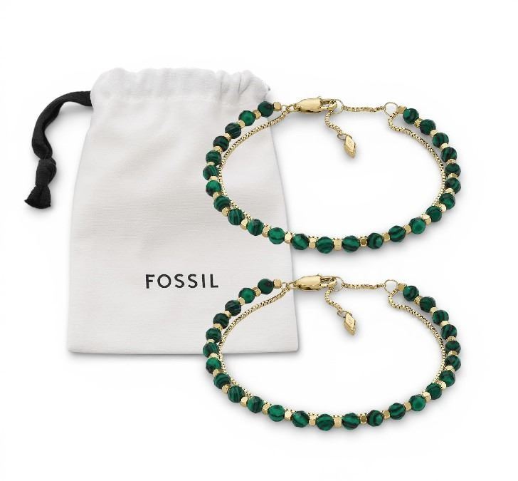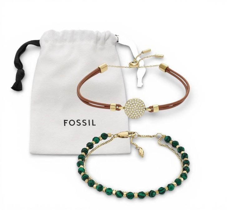 Lot of 4 (3x New Fossil Women's Stainless Steel Gold-Tone Sadie Glitz Disc- 1x Brown Leather Bracelet)