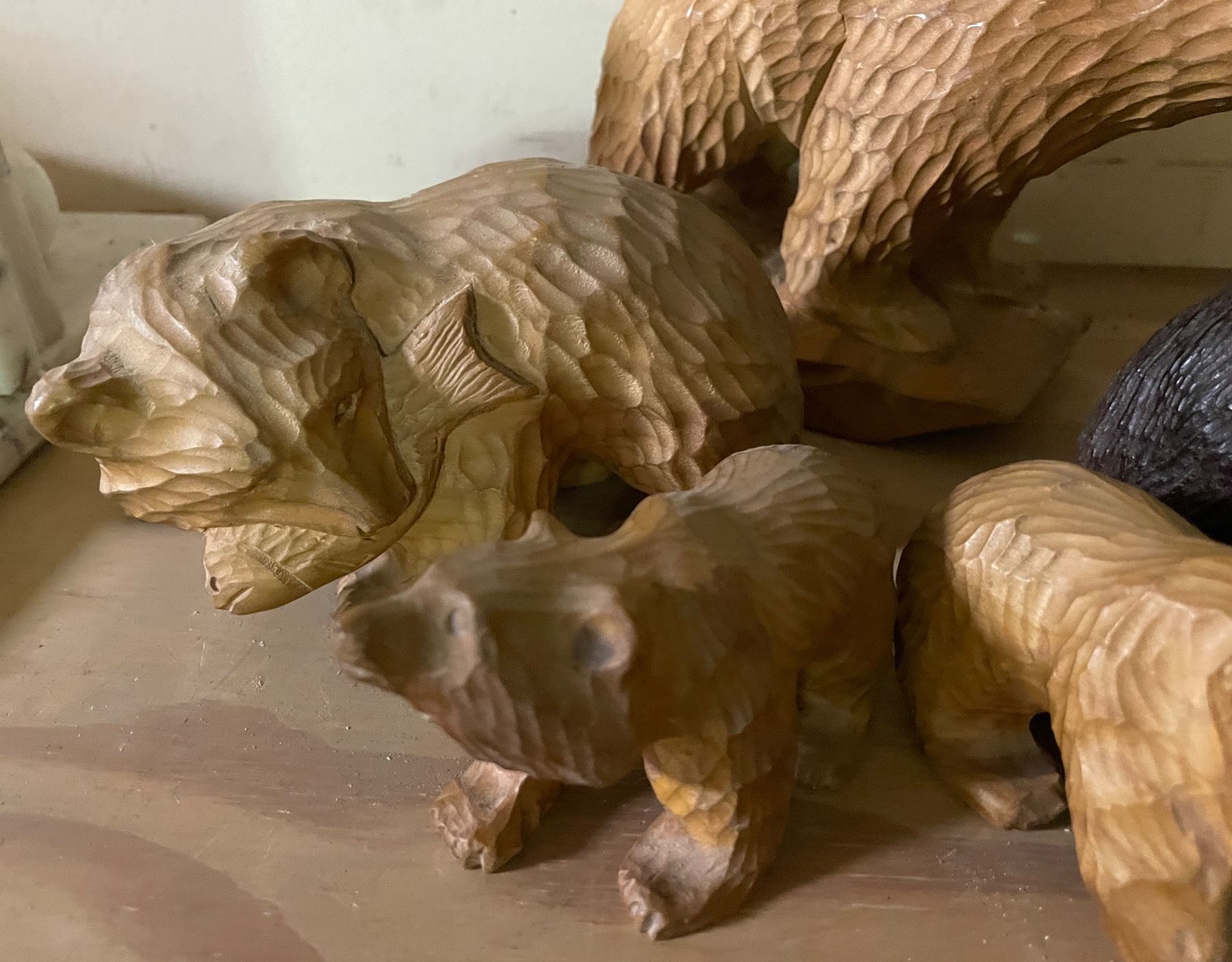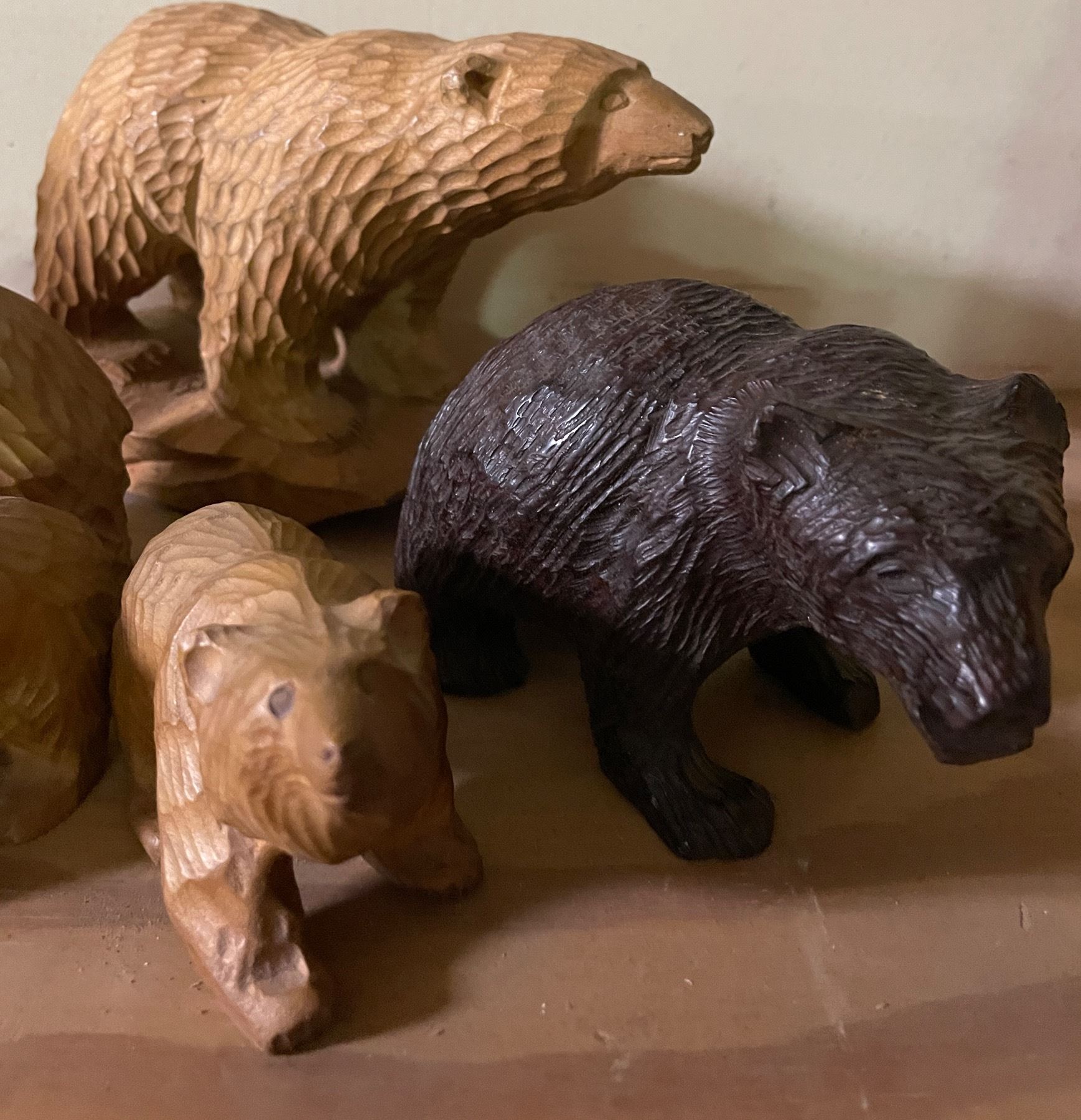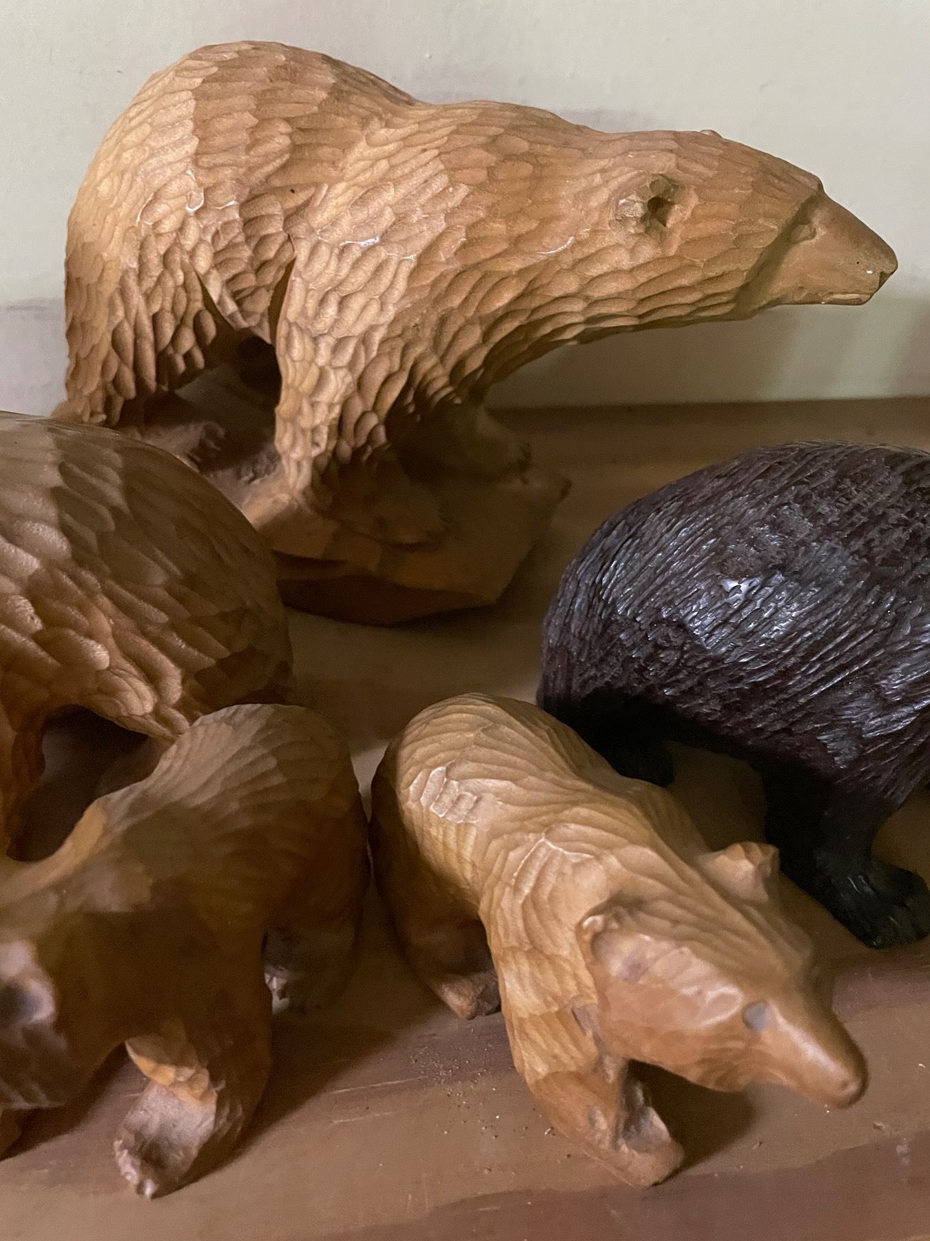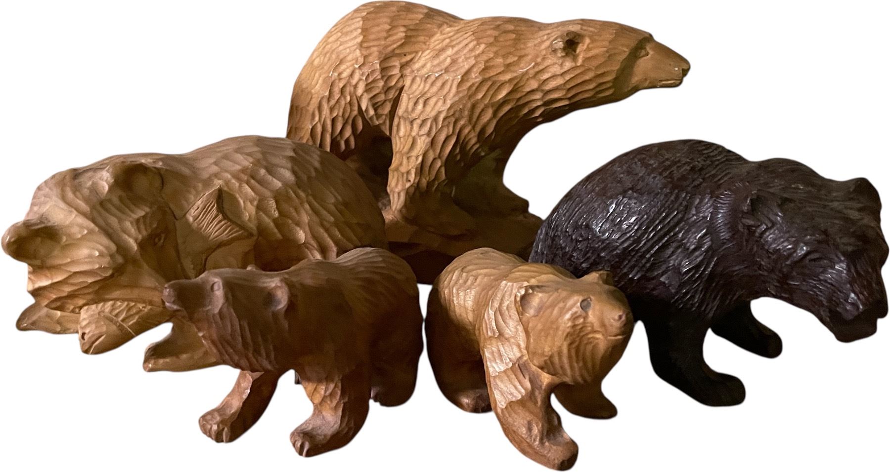 Lot of (5) Hand-Carved Wooden Bear Figurines in Assorted Sizes and Finishes