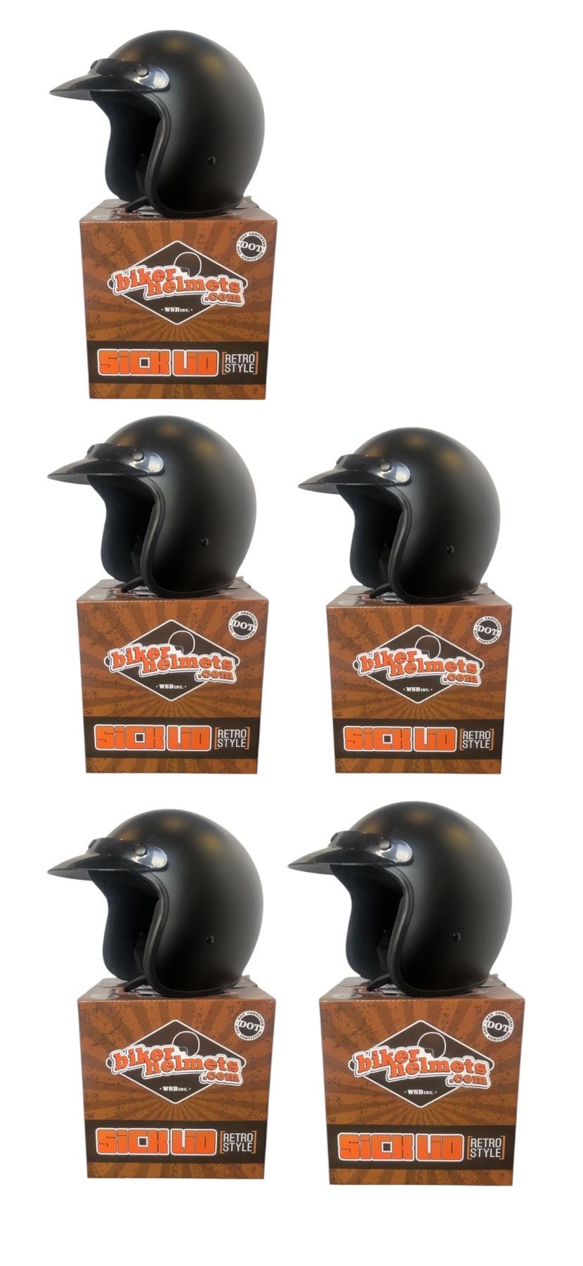 Lot of 5 New WSB Sick Lid Retro Style Open Faced Helmet w/ Snap on Visor (Matte Black) - Size S - Re