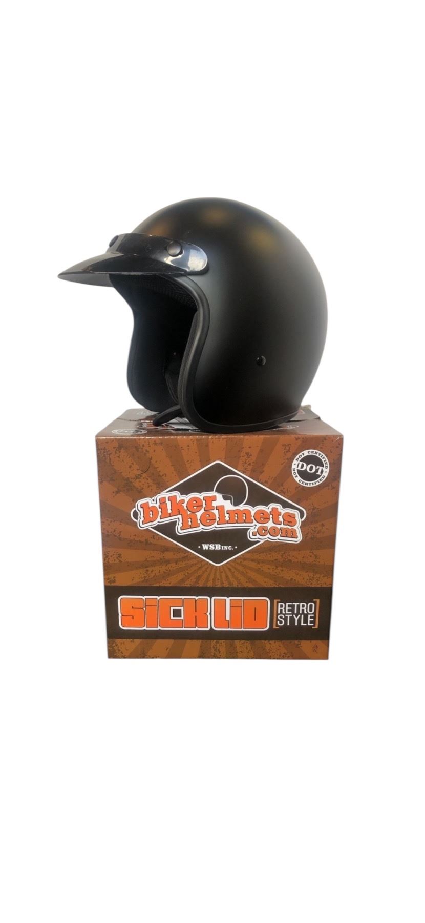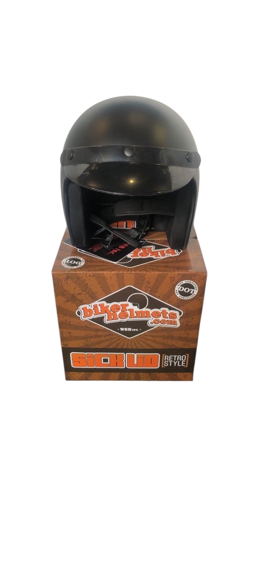 Lot of 5 New WSB Sick Lid Retro Style Open Faced Helmet w/ Snap on Visor (Matte Black) - Size S - Retail $900