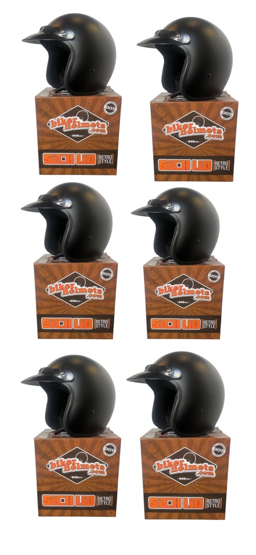 Lot of 6 New WSB Sick Lid Retro Style Open Faced Helmet w/ Snap on Visor (Matte Black) - Size M Reta