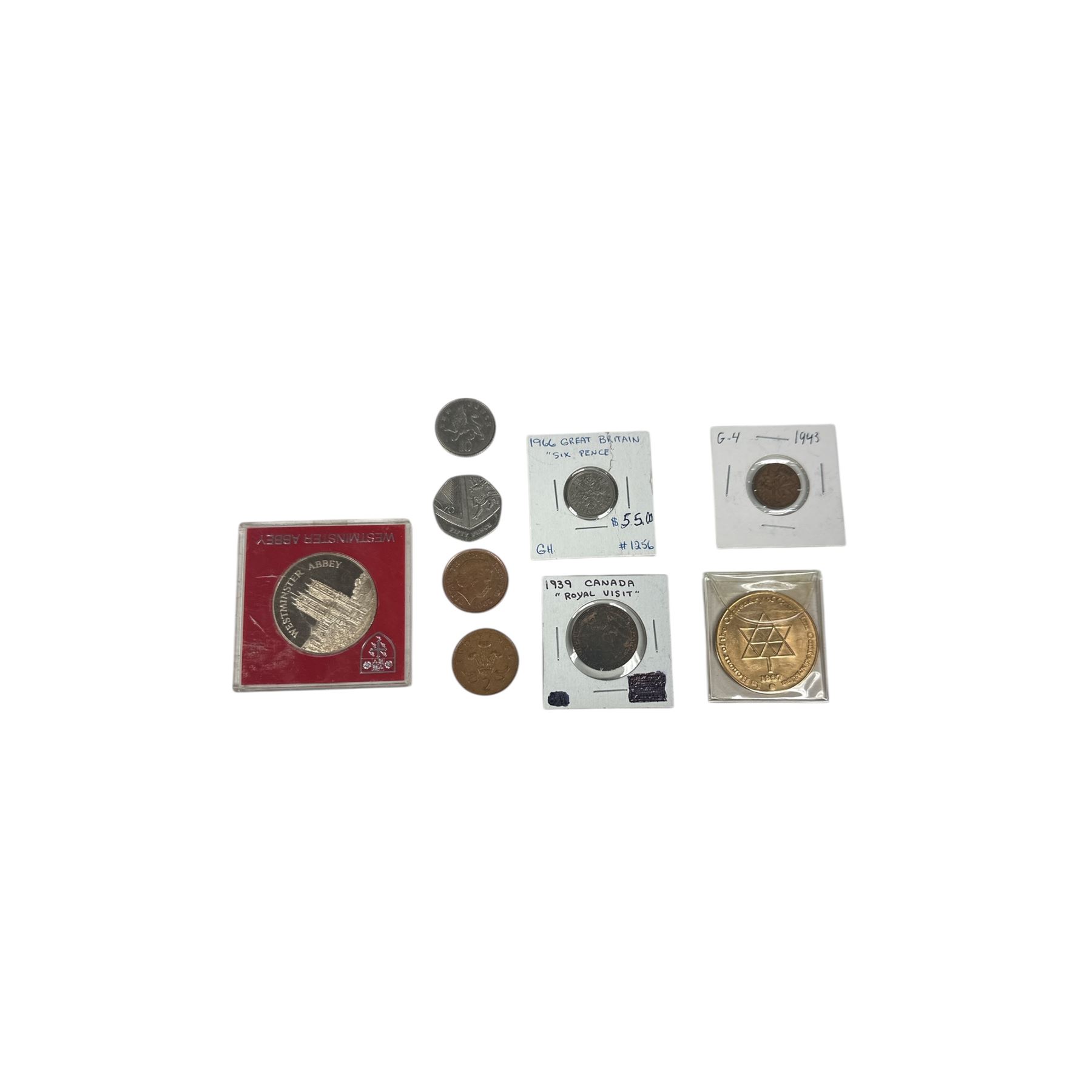 Lot of 9 Assorted British Coins (1943, 1966, Westminster Abbey Coin, Etc...)