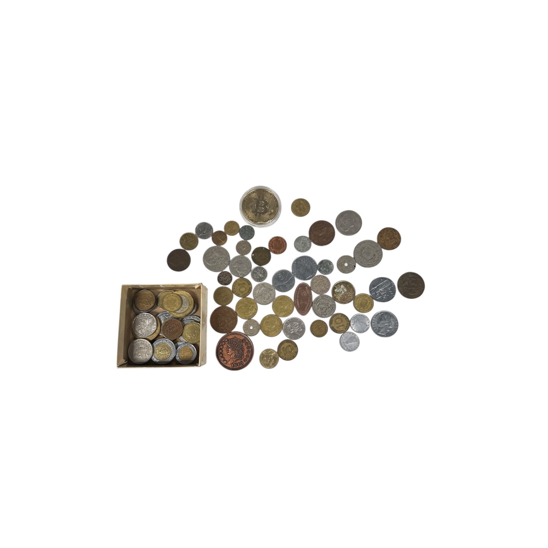 Lot of Assorted Coins (Mexican Pesos, Bitcoin Novelty Coin, Etc..)