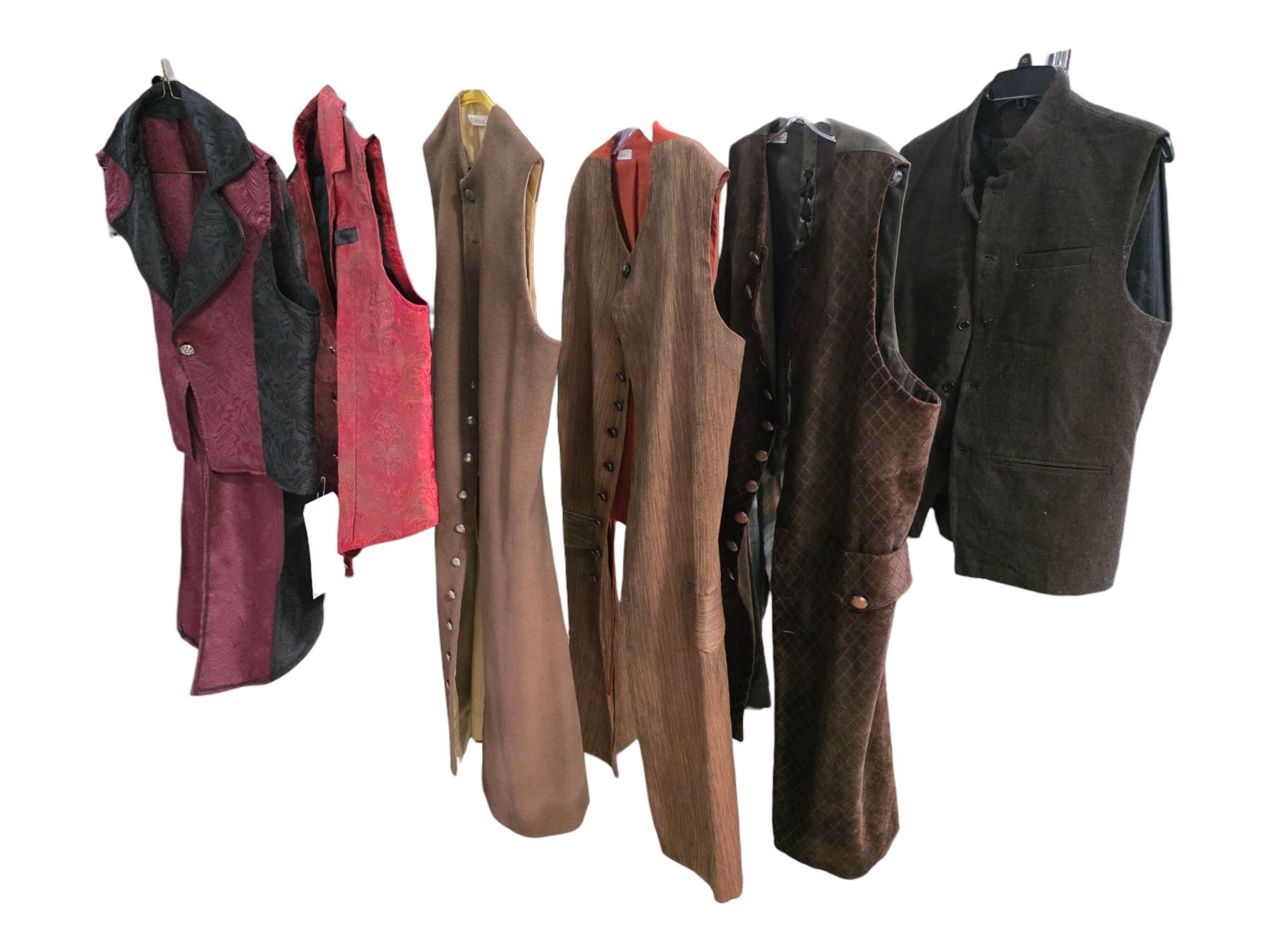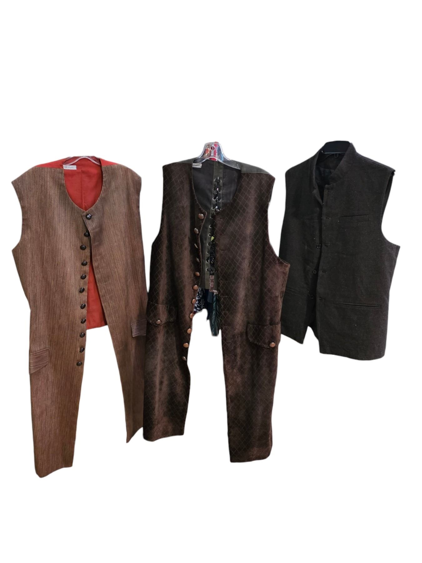 Lot of Assorted Costume Vests - Victorian/Steampunk Style in Mixed Fabrics & Colors (Various Sizes)