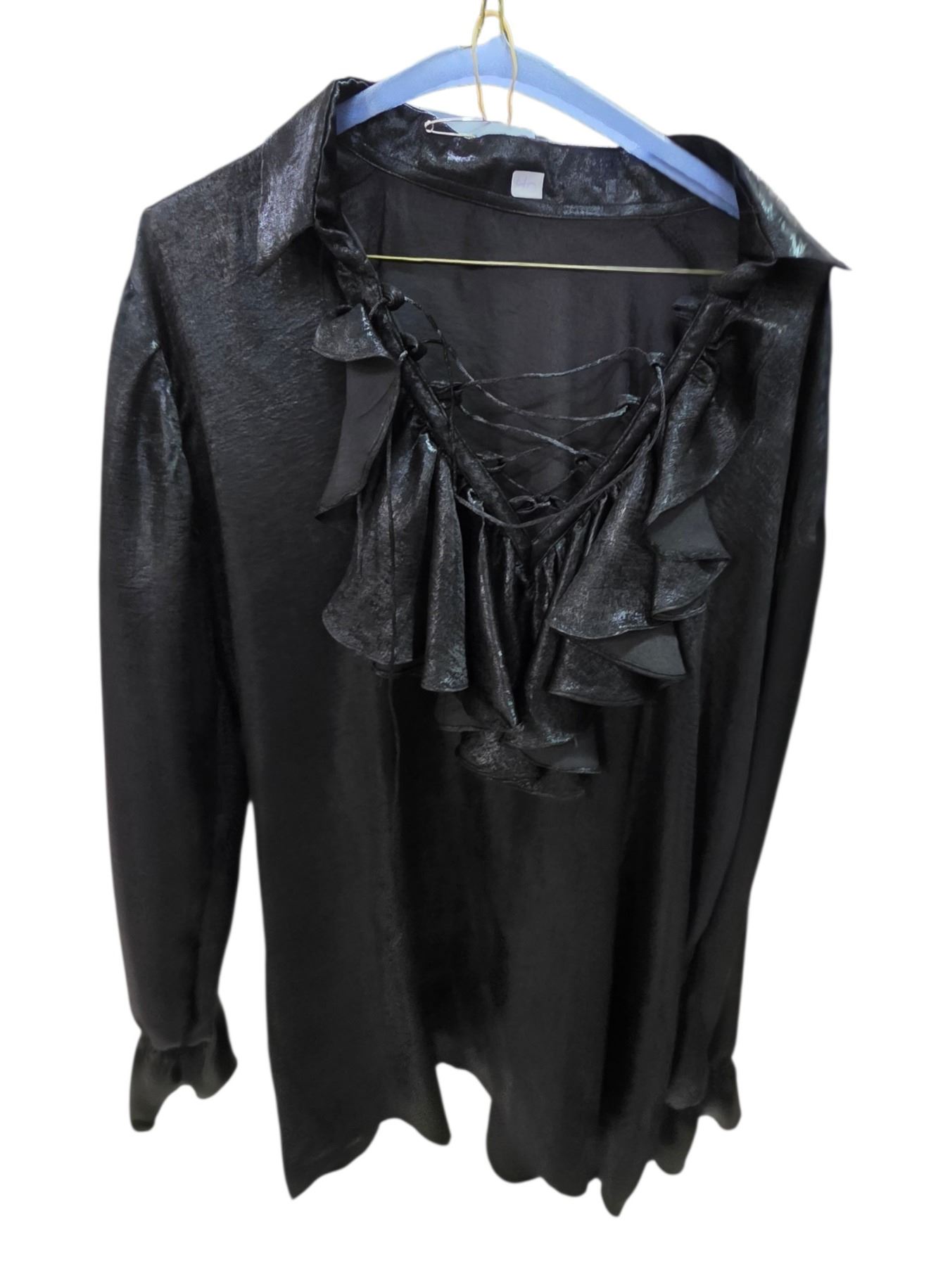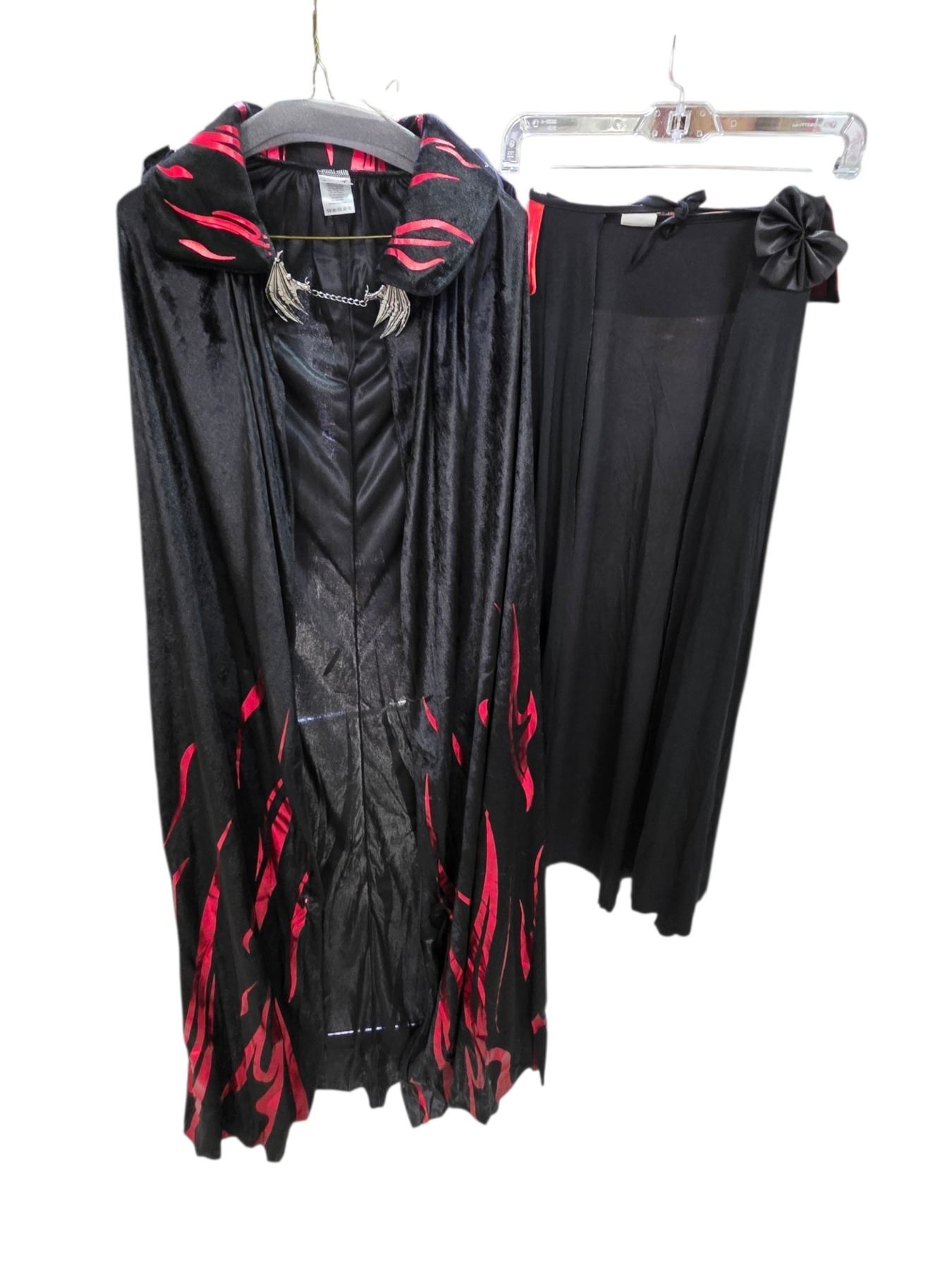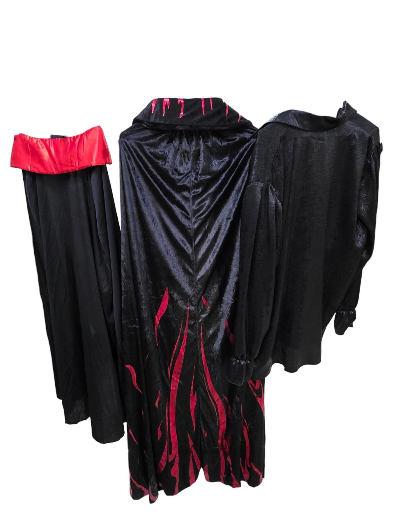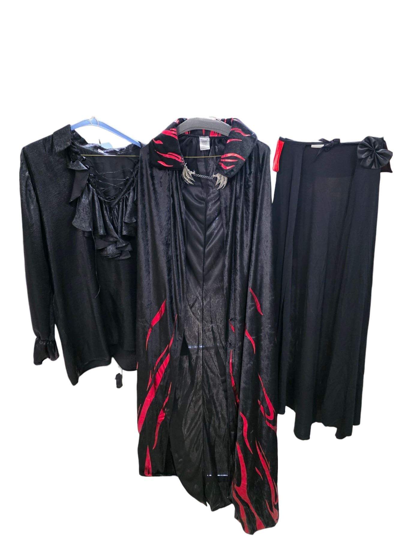 Lot of Black Costume Apparel - Ruffle Blouse, Flame-Trim Cape with Clasp & Long Skirt - Film/TV Wardrobe