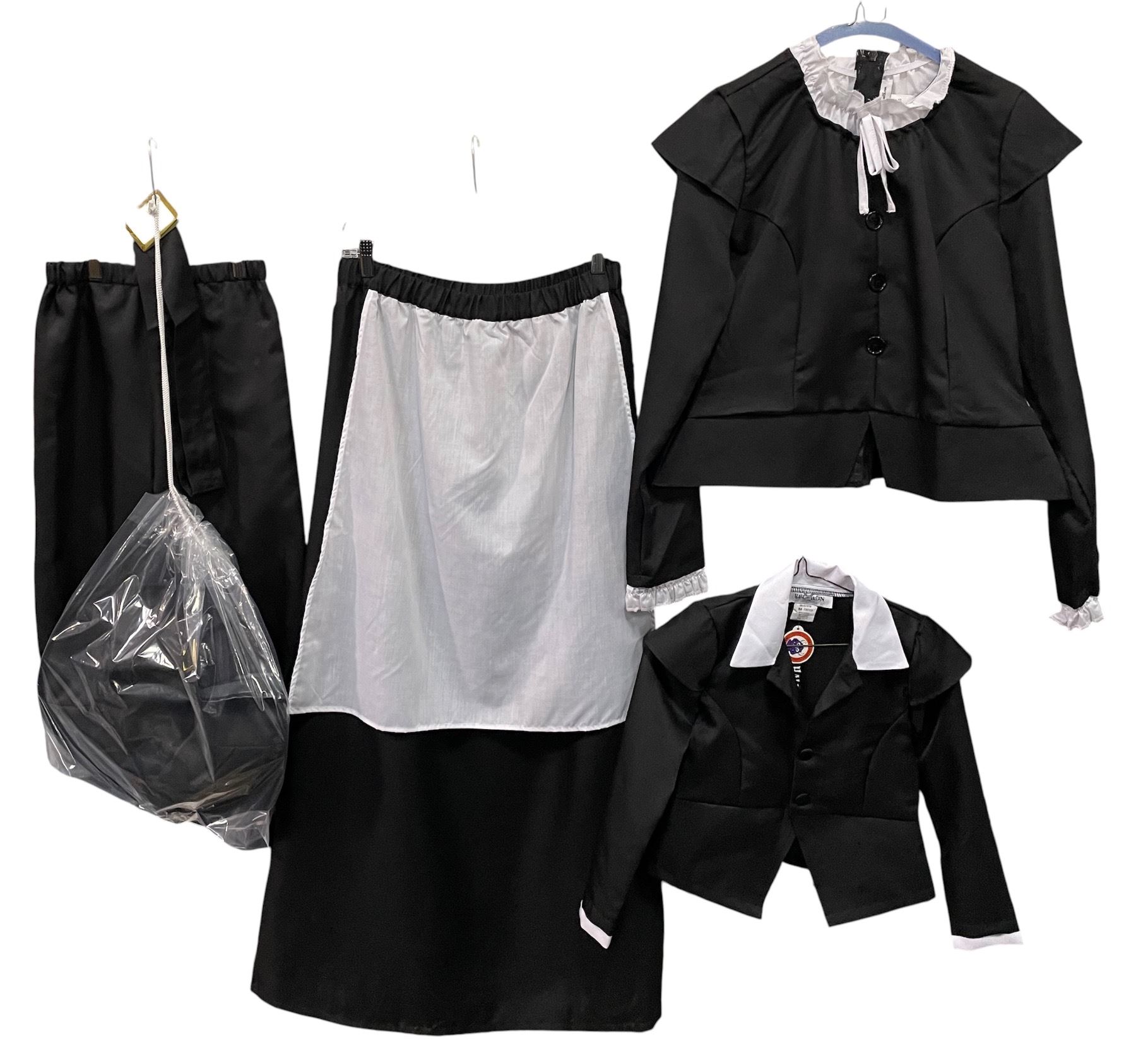 Lot of Black & White Costume Apparel - Apron Skirt, Pants & Formal-Style Jackets (Various Sizes)