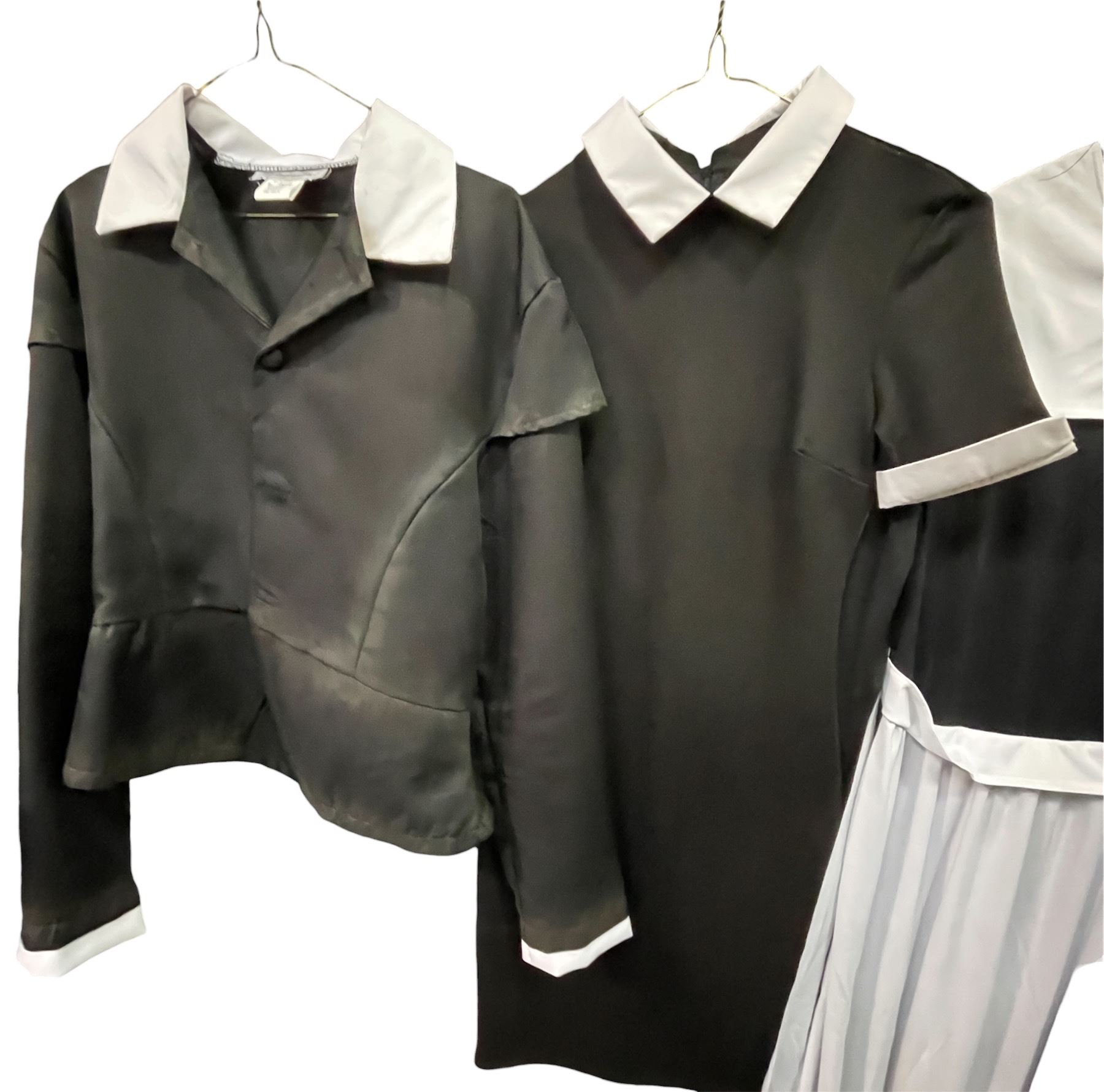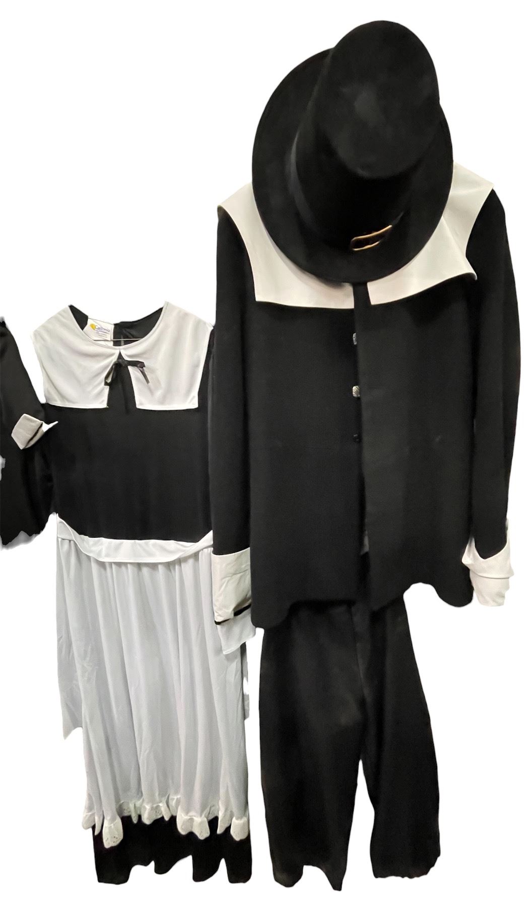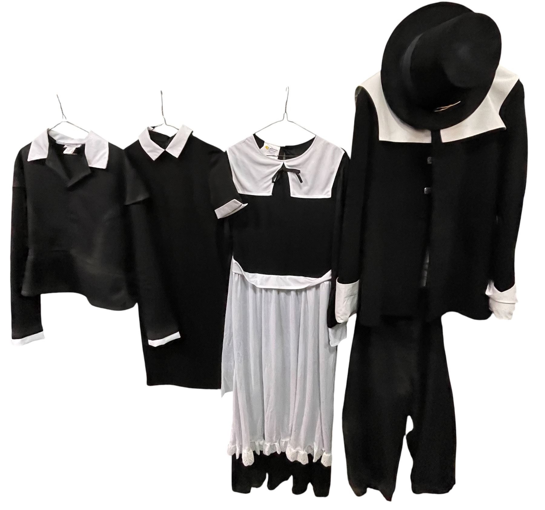 Lot of Black & White Period Costumes - Pilgrim/Colonial Style Outfits with Dress, Tops & Hat