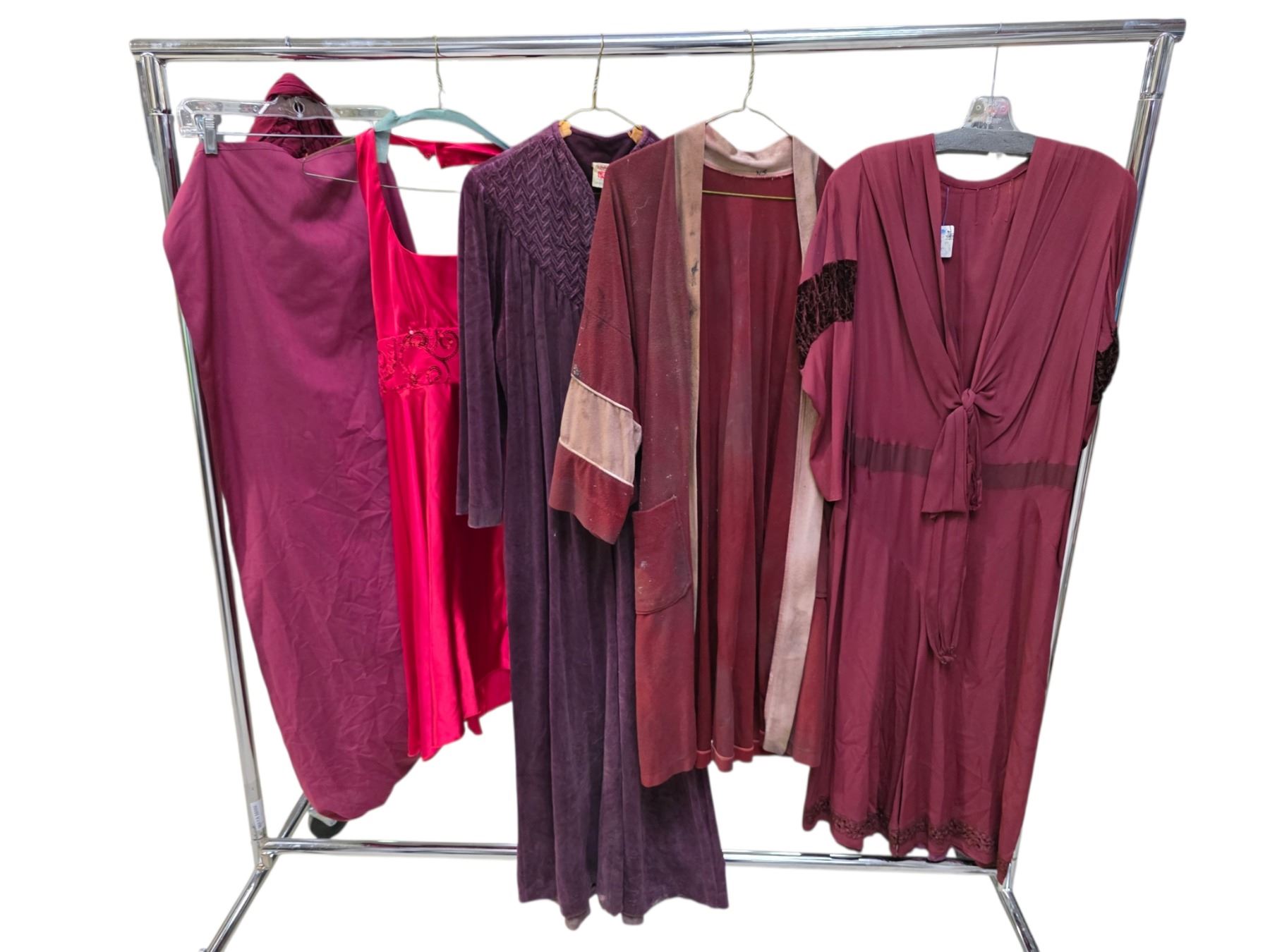 Lot of Burgundy & Purple Vintage Style Dresses and Robes (Various Styles & Sizes)