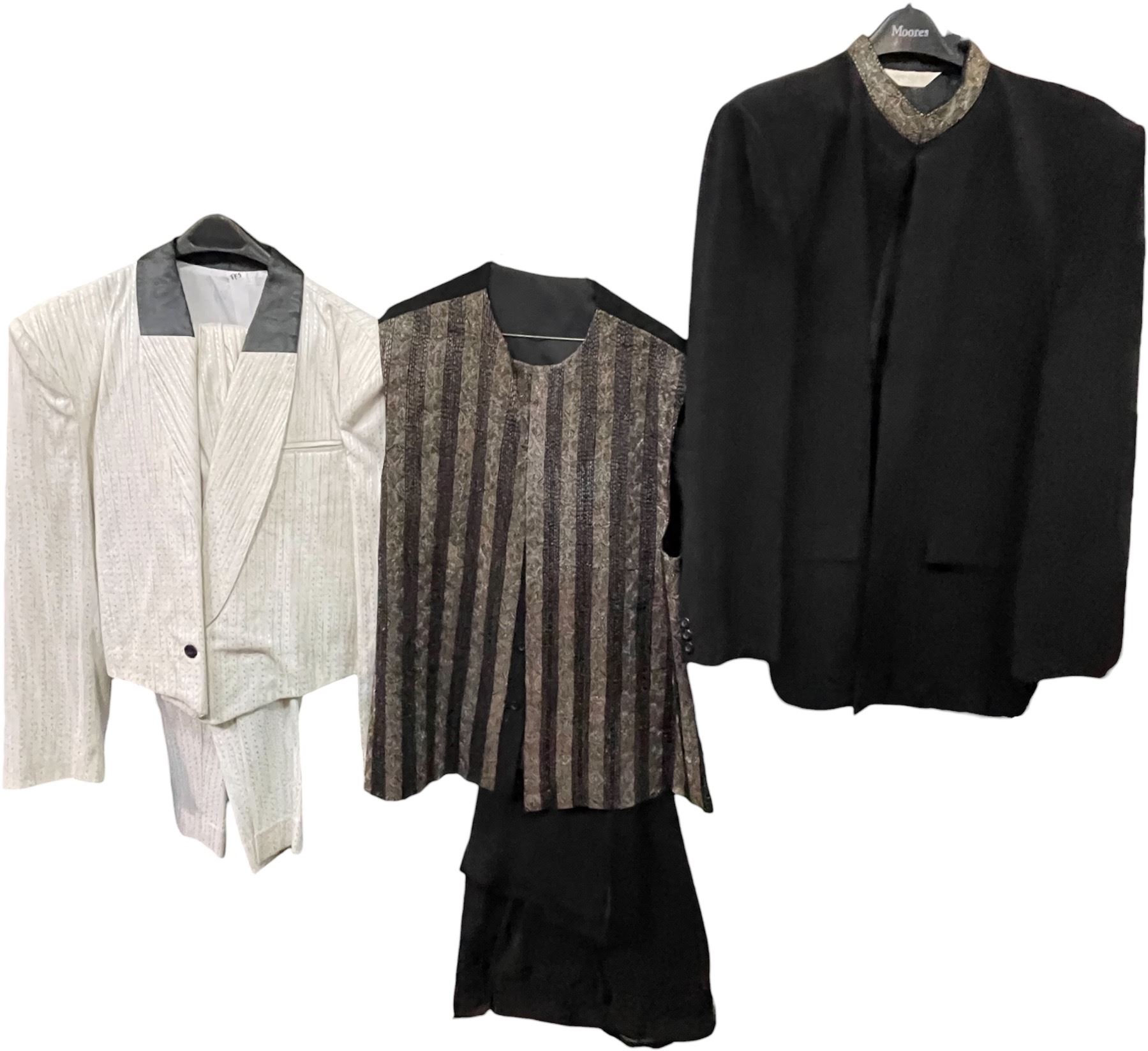 Lot of Formalwear & Costume Pieces - White Tuxedo Jacket, Patterned Vest & Black Cloak (Various Sizes)